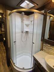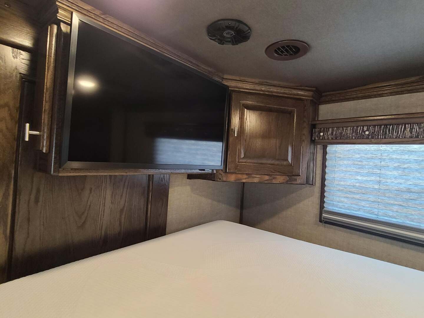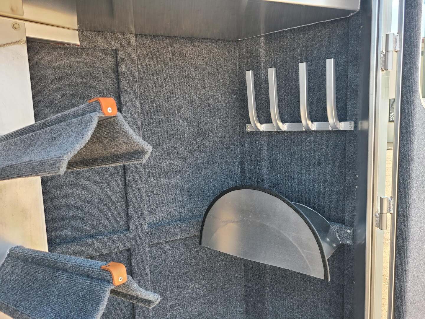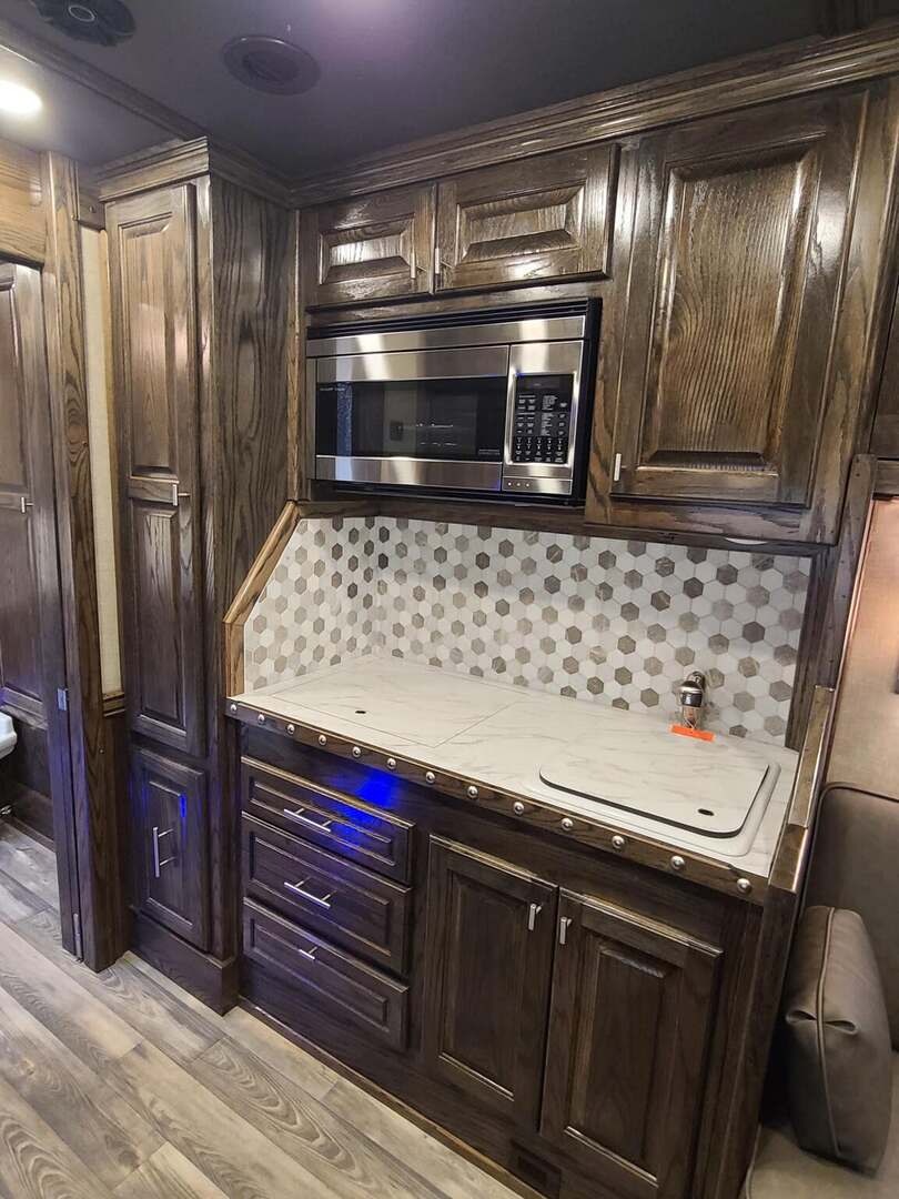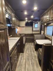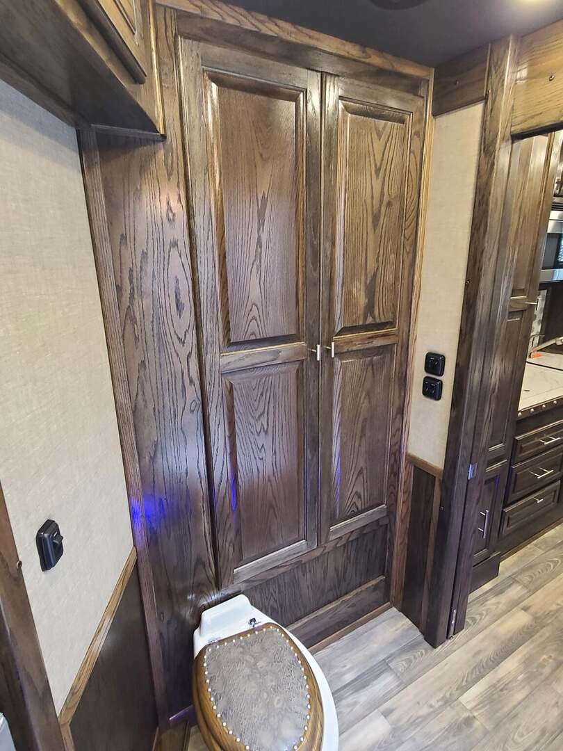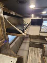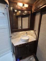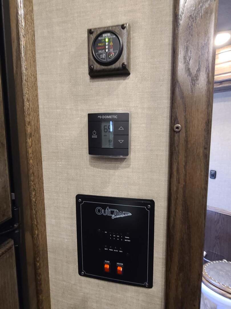 Platinum Coach 5 Horse 16’ short wall Outlaw Conversion features: 8 x 39 x 8’ tall 78” Couch & 74” Dinette floor plan Flip down bunk bed over sofa Onan 4.0 Generator with 19 gallon fuel tank 15,000 BTU A/C with heat pump 32” Smart TV’s in living and 32” in bed area Winegard Connect 2.0 antenna for WiFi AM/FM/CD/DVD player with exterior speakers 6.0 Propane / Electric refrigerator 60 gallon water tank 20,000 BTU furnace 6 gallon propane water heater Two burner recessed cooktop Convection oven over cooktop Deep Almond Porcelain kitchen and vanity sink Slide out trash can under pantry storage Front bench area with storage underneath 34” radius shower in bathroom Porcelain toilet in front of double rod closet with leather on lid Vanity and sink under medicine cabinet next to shower Pocket door to bathroom with mirror on bathroom side 24” walk through door to horses 16’ armless power awning Platinum Coach features: Tri-8k axles with 17.5” aluminum wheels and 18 ply tires Side load configuration, LOADED REAR TACK WERM flooring in horse compartment 4 mangers, escape door on first stall, head side 52” tall spring loaded side ramp, 46” last stall 8’ hay pod with generator landing Flow through dividers, telescoping last divider Stud divider with rubber on first stall Drop down windows on head and hip side Drop down window bars on head side Carpeted rear tack, loaded with bars, hooks, trays, and shelves 2-30# propane bottles Double aluminum battery box with ON/OFF switch Dual 15,000# Equalizer Hydraulic jack