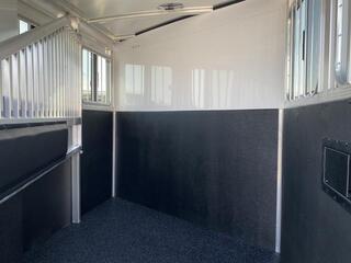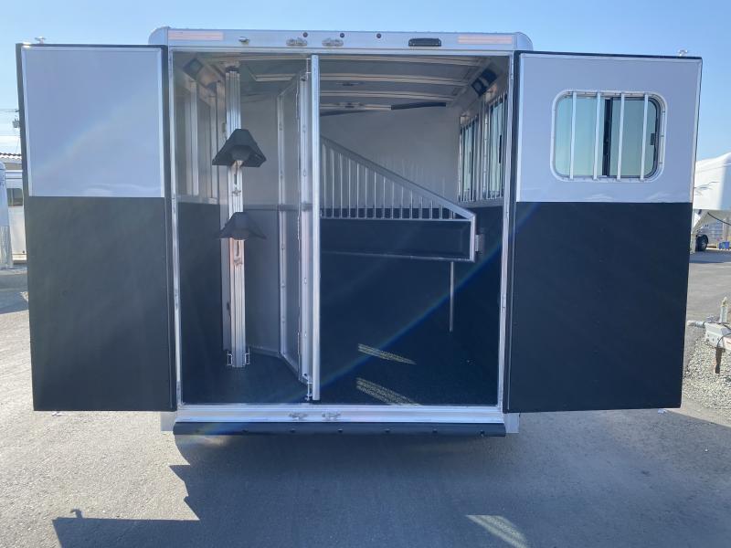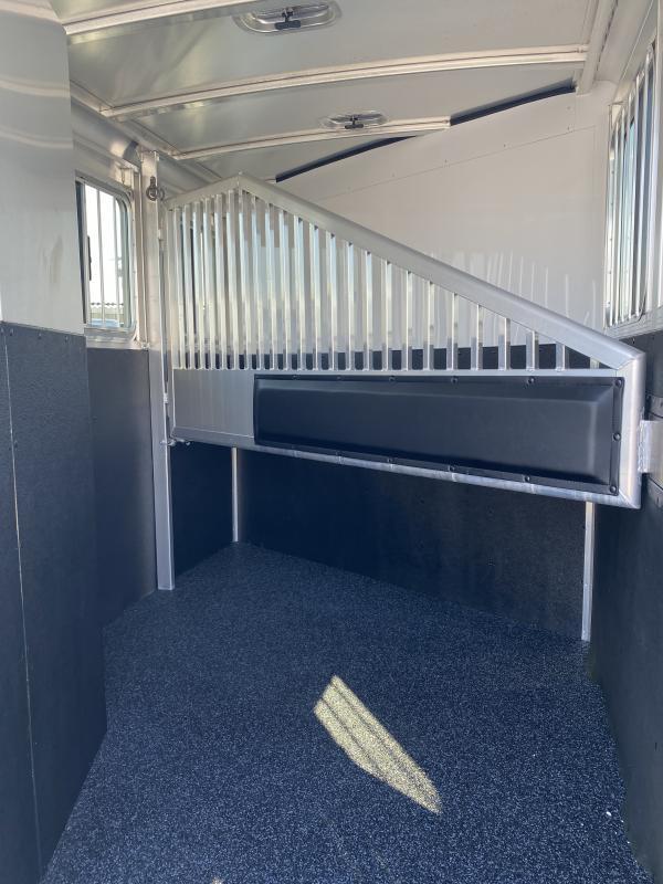 2026 Exiss 2 Horse Slantload Express XT Bumper Pull Trailer. * All aluminum construction * Tandem 3,500# Torsion Axles * 15” Radial Tires with Aluminum Wheels * 4 wheel electric brakes * Interlocking Extruded Aluminum Floor * One piece Aluminum Roof * Smooth White Aluminum Exterior * Extruded Aluminum Slat Outside Horse Area * Full Length Running Boards * Carpeted Front Dressing Room with: * 2 Tier Removable, Adjustable, Saddle Rack (moves to rear tack) * Camper Door with Sliding Window * Halter Hooks, Brush Tray, Blanket Bar, Clothes Rod * LED Interior Light * Spare Tire * Horse Compartment Features: * Drop Down Feed Windows with Drop Bars * Large Sliding Bus Windows Buttside * 2 Way Pop-up Roof Vents * Head & Tail Kickwalls - Double Walled & Insulated up 48” * Heavy Duty, Air Flow, Aluminum Slant Divider on Recessed Slam Latch * Stall Pads on Divider * (2) Inside Tie Rings per Horse / (2) Outside Tie Rings per Horse * Easy Care Floor Coating * LED Interior Lighting * Double Rear Doors with Double Pipe Hardware * Sliding Window in Rear Load Door * Locking Keyed Hasps on Rear Doors * Rubber Bumper * Folding Rear Tack Wall * Saddle Rack Location (moves from Dressing Room to Rear) * ATP Gravel Guard on Nose * LED Tail Lights and Running Lights * LED Rear Load Light Call D2 Trailer Sales 209-745-5480 or for more info www.d2trailersales.com