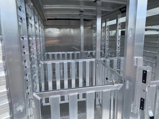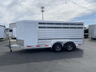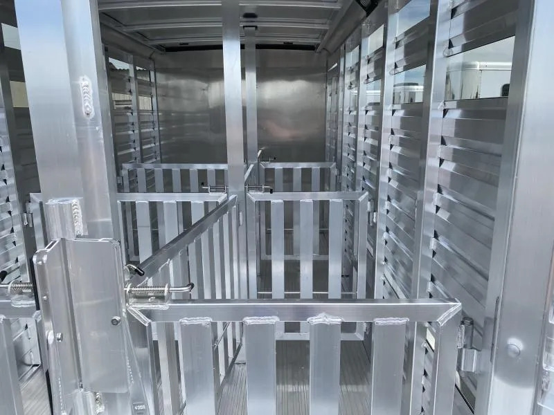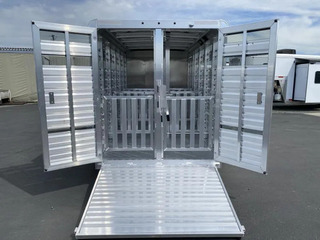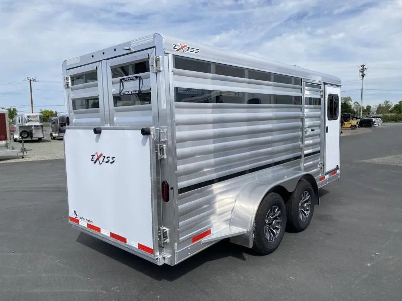 2026 Exiss 615A Mini Exhibitor Combo Bumper Pull Stock Trailer. * 6’ Wide, 15’ Long Box, 6’2” Tall * All Aluminum Construction * One Piece Aluminum Roof * White Aluminum Nose Sheets * Extruded interlocking non-skid aluminum plank floor * 2” x 4” I Beams on 12” centers * Extruded Aluminum Exterior Slats * Tandem 3500# Torsion Axles * 15” Radial Tires with 6 Lug Wheels * Aluminum Wheels * 4 Wheel Electric Brakes 3’ Straightwall Front Tack Room: * Camper Door with Sliding Window * Inside LED Light * Carpeted Floor * Spare Tire Stock Area: * Two Air Spaces with Plexiglas Tracks * 2” Lower Air Gap * Removable Plexiglas Inserts * 32” Wide Side Access Door * Removable 60/40 Pen System * (4) 5x9 Pop-Up Roof Vents * 50/50 Rear Stock Doors * Full Width Rear Ramp * LED Dome Light with Switch * LED Tail Lights * 2 5/16” Coupler Call D2 Trailer Sales 209-745-5480 or for more info www.d2trailersales.com