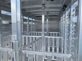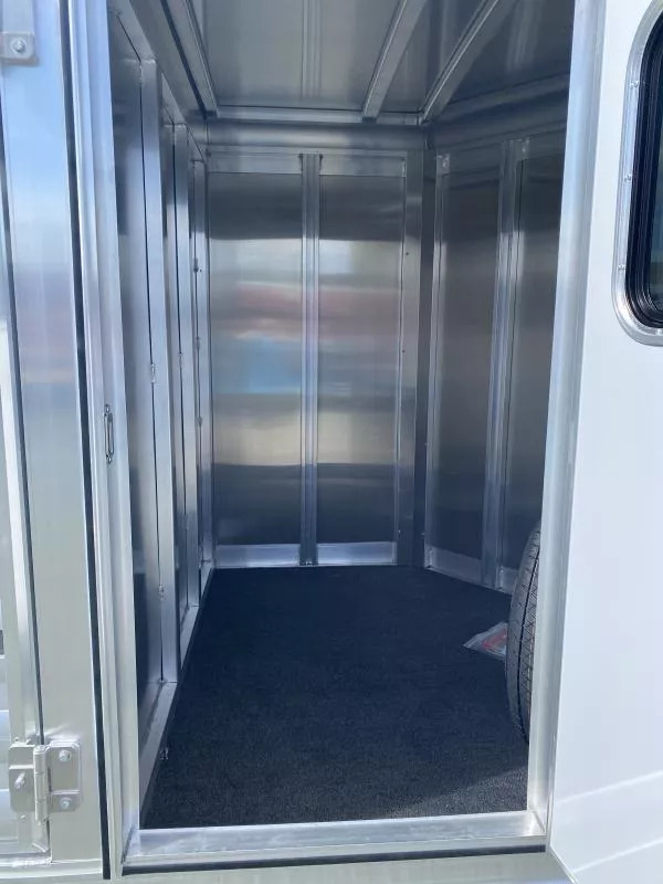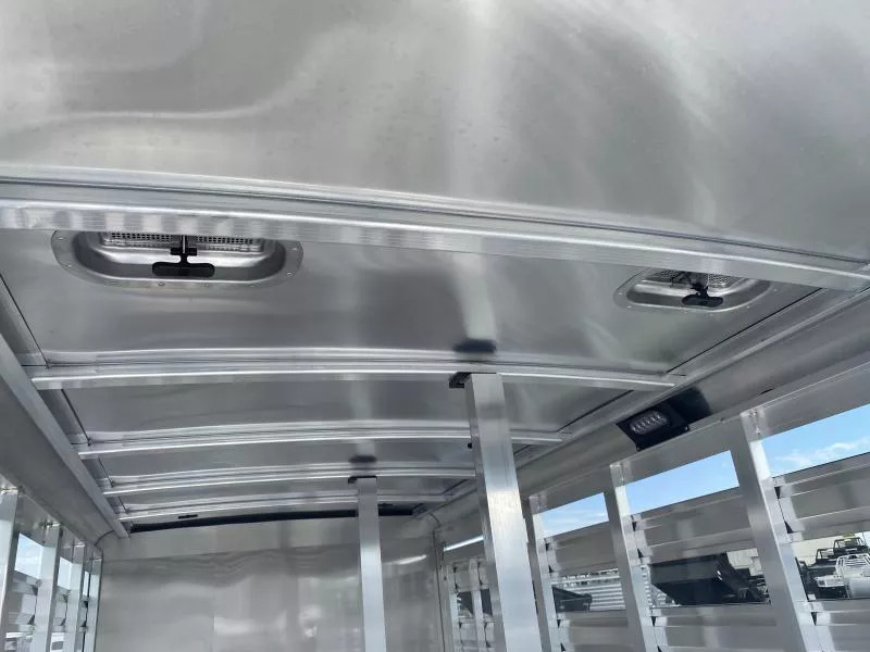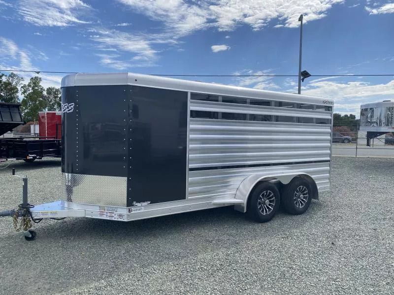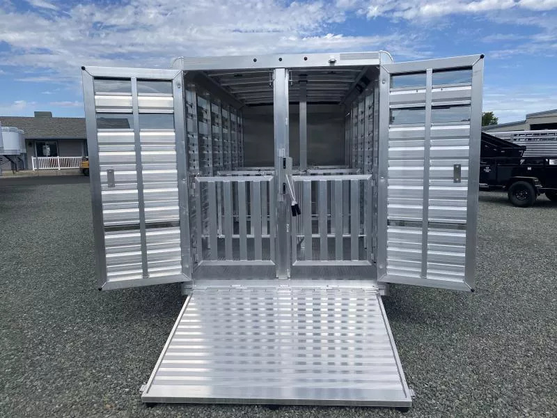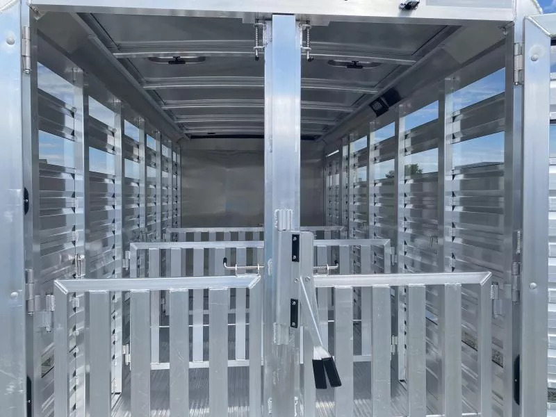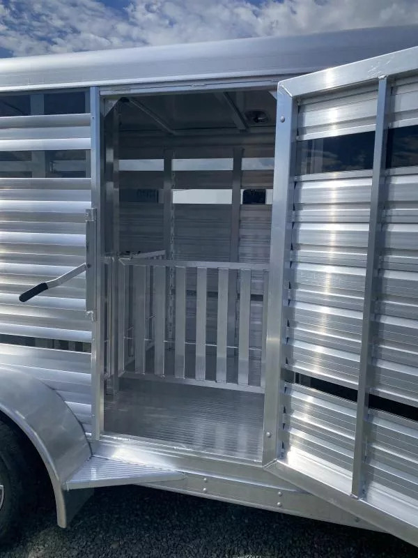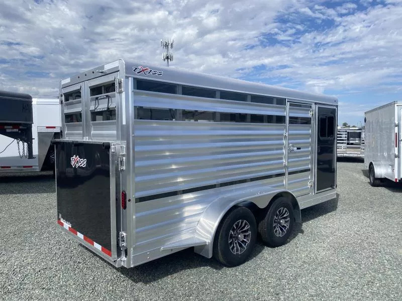 2026 Exiss 615A Mini Exhibitor Combo Bumper Pull Stock Trailer. * 6’ Wide, 15’ Long Box, 6’2” Tall * All Aluminum Construction * One Piece Aluminum Roof * Metallic Black Aluminum Nose Sheets * Extruded interlocking non-skid aluminum plank floor * 2” x 4” I Beams on 12” centers * Extruded Aluminum Exterior Slats * Tandem 3500# Torsion Axles * 15” Radial Tires with 6 Lug Wheels * Aluminum Wheels * 4 Wheel Electric Brakes 3’ Straightwall Front Tack Room: * Camper Door with Sliding Window * Inside LED Light * Carpeted Floor * Spare Tire Stock Area: * Two Air Spaces with Plexiglas Tracks * 2” Lower Air Gap * Removable Plexiglas Inserts * 32” Wide Side Access Door * Removable 60/40 Pen System * (4) 5x9 Pop-Up Roof Vents * 50/50 Rear Stock Doors * Full Width Rear Ramp * LED Dome Light with Switch * LED Tail Lights * 2 5/16” Coupler Call D2 Trailer Sales 209-745-5480 or for more info www.d2trailersales.com
