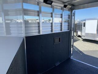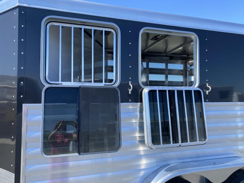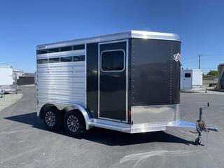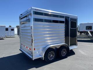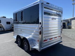 2025 Exiss 2 Horse Slantload Express CXF Bumper Pull Trailer. * All aluminum construction * Tandem 3,500# Torsion Axles * 15” Radial Tires with Aluminum Wheels * 4 wheel electric brakes * GREAT Extruded Aluminum Floor * One piece Aluminum Roof * Running Boards * Extruded Aluminum Slats Horse Area * Metallic Black Aluminum Smooth Skin * Carpeted Front Dressing Room with: * 2 Tier Removable, Adjustable, Saddle Rack * Camper Door with Sliding Window * Halter Hooks, Brush Tray, Blanket Bar, Clothes Rod * LED Interior Light * Spare Tire on Aluminum Wheel * Horse Compartment Features: * Drop Down Feed Windows with Drop Bars Headside * Two Air Gaps Buttside with Tracking for Plexiglas * Plexiglas Inserts * 2 Way Pop-up Roof Vents * Buttside Kickwall is Double Walled & Insulated up 48” * Slant Heavy Duty Aluminum Divider on Recessed Slam Latch * (2) Inside Tie Rings per Horse / (2) Outside Tie Rings per Horse * Easy Care Flooring * LED Interior Lighting * NO Rear Tack * Full Swing Rear Gate with Matching Air Gaps * Rubber Bumper * ATP Gravel Guard on Nose * LED Tail Lights and Running Lights * LED Rear Load Light Call D2 Trailer Sales 209-745-5480 or for more info www.d2trailersales.com