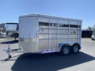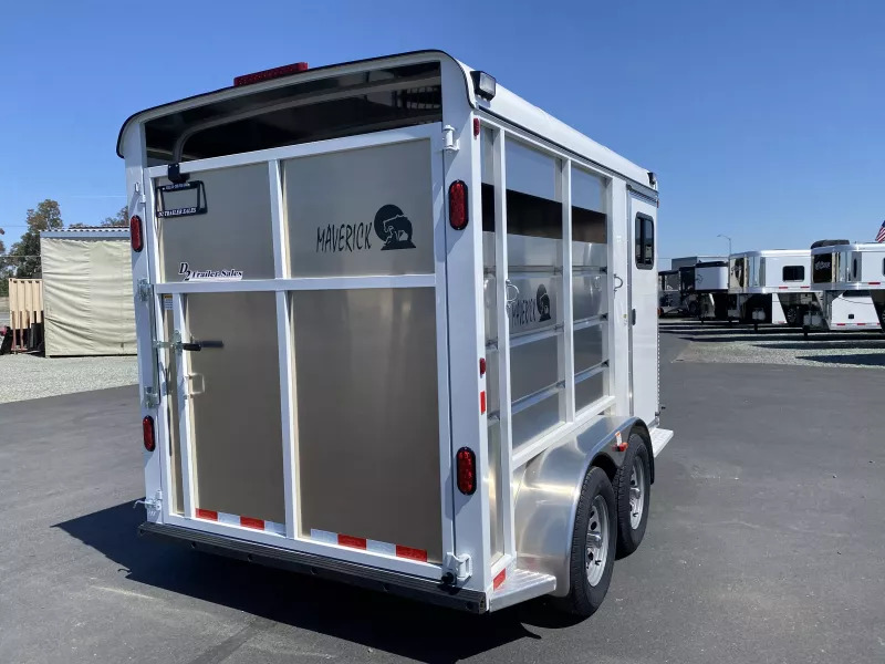 2026 Maverick Highside 2 Horse Slant Bumper Pull Trailer. * 7’ Tall with 40” Wide Stalls * 6’6” Wide * Aluminum Skin * Steel Construction Frame * Automotive Primer and Paint * 3500# Axles with 15” Radial Tires * 4 Wheel Electric Brakes * Carpeted Front Tack Area Includes: * 34” wide Camper Door with Sliding Window * Camper Step * Swing Out Saddle Rack * Bridle Hooks * Blanket Rod * Dome Light * Outside Porch Light * Brush Bag on Door * Horse Area Includes: * Solid Swing Rear Gate * Rubber Floor Mats * Aluminum Slant EZ Latch Jailbar Divider * Stall Pads * Single Air Slat Head and Butt * Inside Tie Rings * Dome Light * Rubber Bumper * Aluminum Diamond Plate Stoneguard * Aluminum Fenders and Steps * Aluminum Roof with Cap * Outside Tie Rings * LED Clearance and Tail Lights * Dual Tail Lights * 2 5/16” Bulldog Coupler * Spare * Call D2 Trailer Sales 209-745-5480 or for more info www.d2trailersales.com