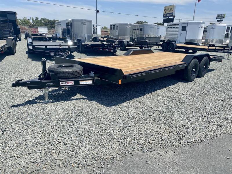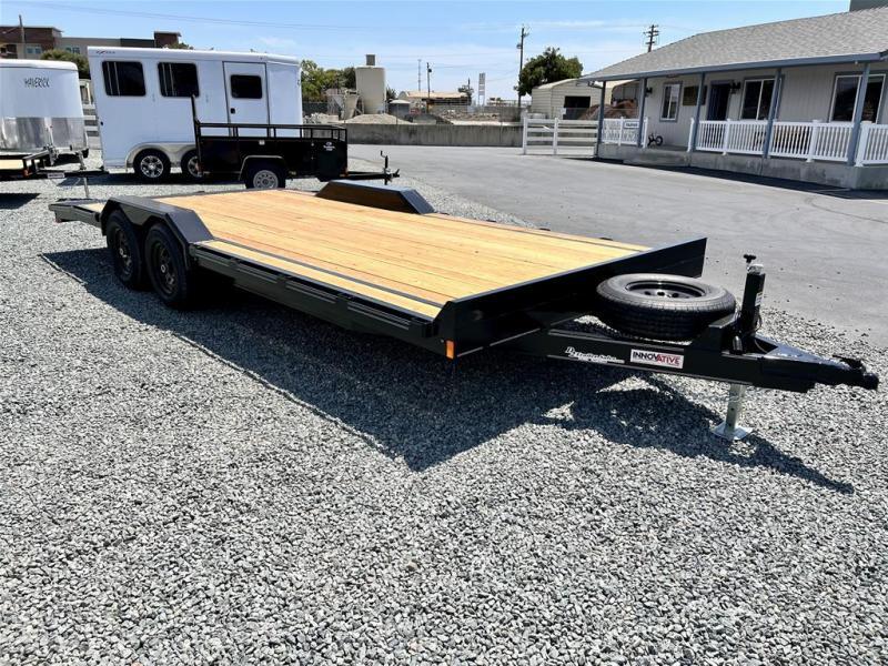 2025 INNOVATIVE 20’ Equipment Flatbed 10K GVWR Trailer, *Wide Deck* with Drive Over Fenders. * 9990K GVWR * Tandem 5200# EZ Lube Axles * 4 Wheel Electric Brakes with Breakaway System * 225 15” D-Rated Radial Tires * 4.5’ Extended Tongue * 2x6” Wood Deck * Fender Width Deck Extensions (Extra Wide Deck) * 10 ga Drive Over Fenders with 10 ga. Fender Backs * Steel Treadplate Dovetail * 6” Channel Main Frame * Wrapped A-Frame Tongue * 5” Channel Front Bumprail * 5’ Long, 3” Channel Slide Out Rear Ramps * Rubrail and Stake Pockets * LED Clearance and Tail Lights * 7 K Drop Leg Jack * 2 5/16” Coupler * 7 Way Plug with Sealed Wiring Harness * Spare Mount and Spare Tire Call D2 Trailer Sales 209-745-5480 or for more info www.d2trailersales.com