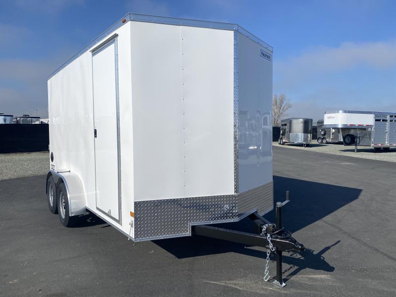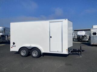 2025 HAULMARK Passport DX, Tandem Axle, 7x14 Cargo Trailer with Rear Ramp. * 7’ Interior Height * V-Nose Design (adds interior length) * A-Frame Tongue * Tandem 3500# Brake Axles - 4” Drop * E-Z Lub Hubs * 15” Radial Tires * Smooth Aluminum Radius Fenders * 3/4” PlexCore Decking * (4) 5K Recessed D-Rings * Undercoated Chasis * 16” Stoneguard * One Piece Aluminum Roof * 2” x 4” Tube Main Rails * .030 Aluminum Exterior Skin * Cable Assist Rear Ramp * 16” Ramp Extension * 3/8” PlexCore Interior Sidewall Liner * 32” PT Side Door * Vertical Sideposts on 16” Centers * Flow-Thru Sidewall Vents * 12v Interior Dome Light * 2 5/16” Coupler * 7 Way Plug * Break Away Kit * Safety Chains with Clevis Hook and Latch * Top Wind Jack with Sand Pad * LED Exterior Lights * White Call D2 Trailer Sales 209-745-5480 or for more info www.d2trailersales.com