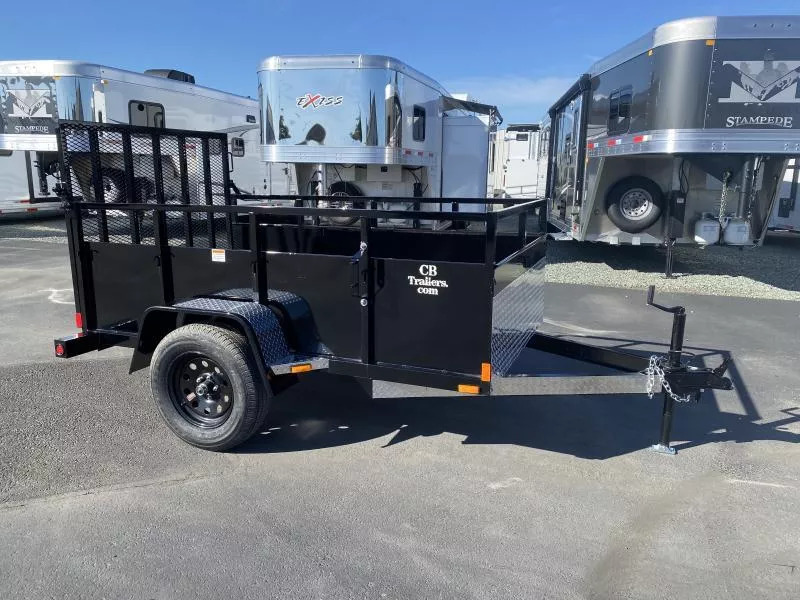 2026 C&B 5’ wide x 8’ long Single Axle Utility / Landscape Trailer. * 3500# Idler Axle * 15” Radial Tires * A-Frame Tongue * 32” Tall Sides to Top Rail * 22” Tall Solid Sheeting with Crimped Top * ATP Rockguards * Utility Rail Top Rail * 2x6 Wood Deck * Exterior Tarp Hooks * 4’ Tall Tubular Framed Rear Ramp Gate * Spare Mount on Side * Sealed Boxed Tail Lights * LED Light Package * Top Wind Jack * 2” coupler * 4 Way Flat Plug Call D2 Trailer Sales 209-745-5480 or for more info www.d2trailersales.com