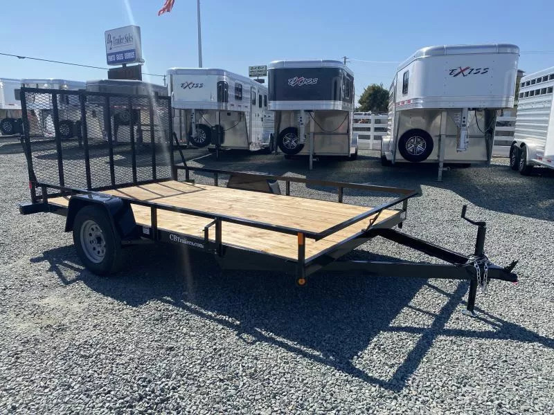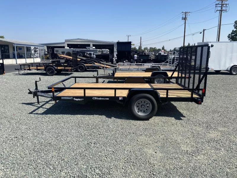 2026 C & B 82” wide x 12’ long Single Axle Utility Trailer. * 3500# Idler Axle * 15” Radial Tires * Utility Rail Sides * 4” Bump Out on Front Rail for Extra Deck Length * Angle Iron Top Rail * 4” Channel Tongue * 4” Channel Frame * 2x6 Wood Deck * Interior Tie Downs-(1) Center Front & (2) each Side * 4’ Tall Tubular Framed Rear Ramp Gate * Spare Mount on Side * Sealed Boxed Tail Lights * Crank Jack * 2” coupler * 7 Way Plug Call D2 Trailer Sales 209-745-5480 or for more info www.d2trailersales.com