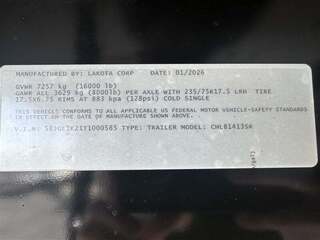 Trailer Details: * Model: CHL81413SR * All Aluminum Construction * 8’ Outside Box Width * 7’ 6” Interior Height * 34’ Floor Length * 42’ Overall Length * (2) 8000# Axles & Electric Brakes * ST235/75R17.5 Tires & Smoke Aluminum Wheels (8) Lugs Horse Area Details: * Mid Tack w/ Saddle Rack, Blanket Bar & Bridle Hooks * Rubber Floor Mats * Center Gate * 16’ Stock Area * 50/50 Rear Doors Living Quarters: * 18’ SW Living Quarters * 7’ Slide Out * Ducted AC & Furnace * Hot Water Heater * Black Stainless Steel Sink * 2 Burner Stove Top * Microwave * 6 Cu Ft Fridge/Freezer * Sofa * Black Stainless Steel Sink w/ Vanity * Shower & Toilet * Pass Through Door * 21’ Awning GVWR 16,000# Empty Weight 11,220# Sale Price Does Not Include Tax, Registration Fee, License, Freight, & Document Fee. We do not take out of State Checks. No guarantee as to the accuracy of this document is expressed or implied.