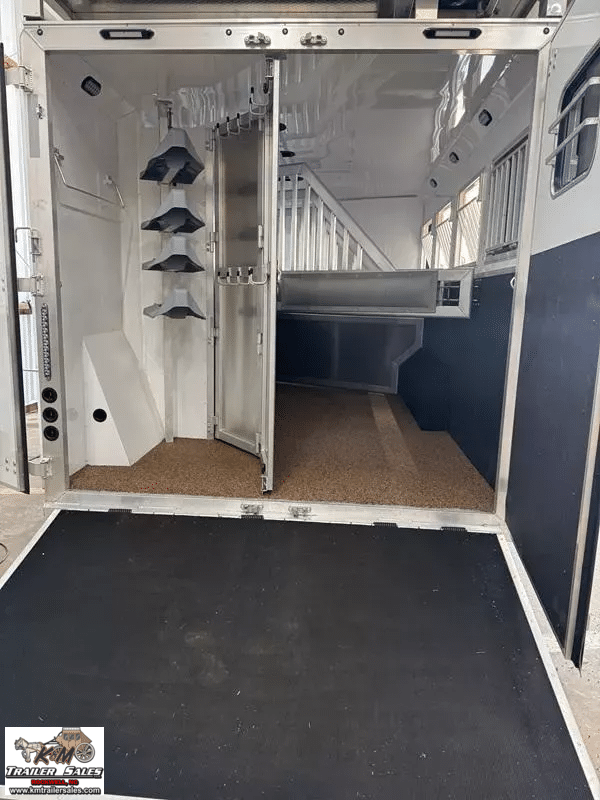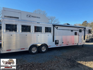 Unmatched Quality & Comfort – The 2025 SMC 4-Horse Trailer You’ve Been Waiting For!! Elevate your equestrian journeys with this New 2025 SMC 4-Horse Gooseneck Trailer, expertly crafted to deliver robust performance and luxurious comfort. Horse Area – Built for Safety & Convenience Rugged aluminum construction, dual 8,000 lb axles, and electric brakes ensure strength and reliability. Spacious slant-load configuration with drop-down windows on both head and tail for exceptional airflow. Features include mangers, hay pod, escape door, air-flow dividers, and stud divider for ultimate animal safety. Hoof Grip flooring that offers easy upkeep and durability. Living Quarters – Travel in Style Thoughtful layout includes a rear kitchen and a comfortable sofa/dinette. Equipped with A/C, furnace, Onan 4000 gas generator, a 6.0 cu ft fridge, recessed glass cooktop, and convection oven. Enjoy daily convenience with a neo-angle shower, a 10-gallon gas/electric water heater, and ample storage. Outdoor-ready with electric slide-out, power awning, and a mounted TV-plus a comfortable mattress to rest on. Additional Features & Build Gooseneck hitch for seamless towing and stability. Solid aluminum build with high-end craftsmanship synonymous with SMC trailers. Interested? Let’s Connect Contact us today to schedule a private tour or request a full spec sheet. Easy Financing options available. Trades and deliveries can be arranged. Drive away with luxury, comfort, and unmatched peace of mind-this 2025 SMC 4-Horse trailer is ready to go the distance. K&M Trailer Sales LLC 160 Wallace Ln. Rockwell, NC 28138 704-209-3514 info@kmtrailersales.com wwwkmtrailersales.com