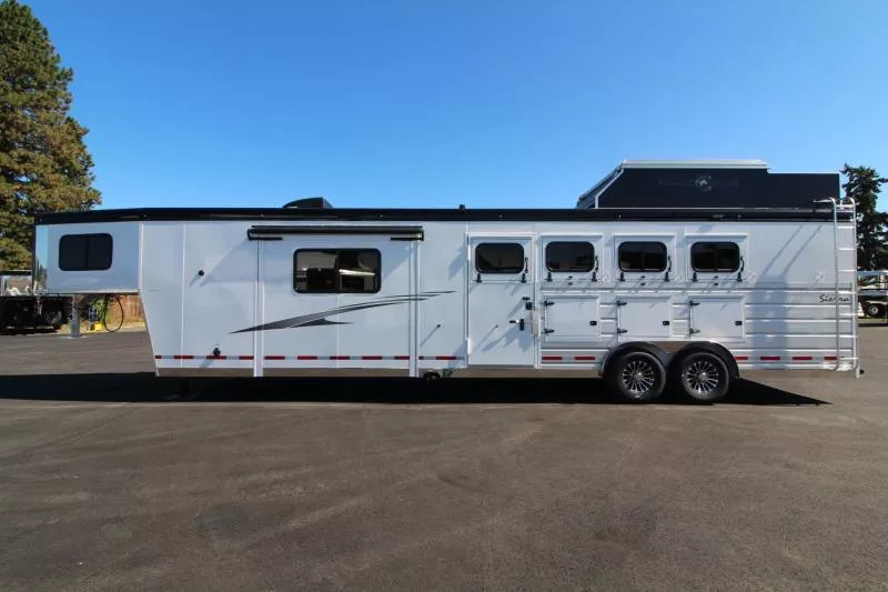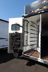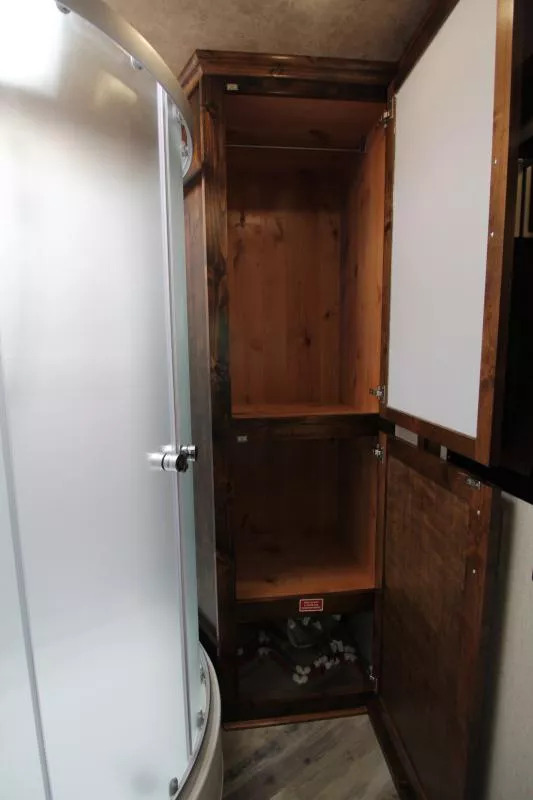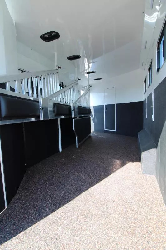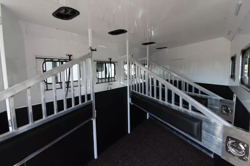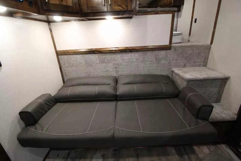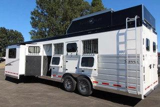 Trails West knows the importance of ease on the road. That’s why we design each living quarters horse trailer to suit your needs. We take the extra step of constructing not only the trailer shell, but the living quarters area as well in our in-house facility in Preston, Idaho. Trails West knows the importance of ease on the road. That’s why Trails West designs each living quarters horse trailer to suit your needs. We take the extra step of constructing not only the trailer shell, but the living quarters area as well in our in-house facility in Preston, Idaho. UPGRADED OPTIONS: Hay pod Portable Gen-ready 320 watt Solar Black-out package 3 Burner Cooktop w/ Oven Convenience Package Exterior Faucet Stud Divider Manger Package w/ Drain Exterior Outlet Pass through Door Shower Dome Exterior Shower Escape Door 2 Exterior Speakers Power Awning Roll out screen door CONSTRUCTION & EXTERIOR: Camper Door w/ 24” Window 24 x 48 Escape Window 18 x 18 Window 8’0” Wide 7’6” Tall 8’ Gooseneck Side Tack Slide-out Dual Hydraulic Jacks Retractable Step Under Camper Door Power Awning Hoof Grip Flooring in Horse Compartment INTERIOR: Soft Touch Ceiling Synthetic Leather Sofa & Dinette Cushions Day/Night Shades w/ Valances Color coordinated interior Vinyl floor w/wood print throughout Hardwood Cabinetry Stairs into bed area FRESH & WASTE WATER SYSTEMS: Low point fresh water drains Demand type water pump Combination locking water center 48 gal. fresh water tank 28 gal. black holding tank 28 gal. gray holding tank 6 gal. DSI water heater Sewer hose storage compartment Sewer hose and adapter GALLEY: 2 burner cooktop with range hood 8 cu ft. Electric refrigerator Sink Wood trimmed counter tops Flip up counter top extension Microwave/Convection Oven HEATING/INSULATION: Dual 5 gal. propane tanks w/ auto changeover Fully insulated floor, roof and walls 18,000 BTU furnace (ducted to bathroom) Ducted Air Conditioning SAFETY: Locking water fill door Fire extinguisher CO/Smoke detector L.P. detector Alternate emergency exit BATHROOM: 36” x 40” Shower stall with glass door 12 volt exhaust fan Fresh water flush toilet Wash basin with vanity Large Wardrobe Closet (2) Drawers SLEEPING ACCOMMODATIONS: Queen size bed Bedspread, pillows & shams Dinette & Sofa coverts into a bed ELECTRICAL: Locking battery box Monitor Panel 320 watt Solar 12 volt outlets 110 volt outlets 110V/12V power converter w/charger 30’ service cord AM/FM stereo with CD player TV antenna with power booster Porch light by camper door Lighted grab handle by exterior door Recessed LED lighting STRUCTURAL 8’0” Wide, 7’6” Tall Aluminum One-Piece Roof .050 Aluminum Exterior Sheets/Anodized Aluminum Extrusions Steel Frame 2 x 10 Douglas Fir Floor Torsion Axles with Easy Lube Hubs Four Wheel Electric Brakes Radial Tires HORSE COMPARTMENT FEATURES Triple Wall Construction Lined and Insulated Roof and Walls Bottom Latch Drop Down Feed Doors Head Side Drop Down Safety Grill Slam Latch, Aluminum, Jailbar Dividers Divider Pads Sliding Windows Tail Side Roof Vent in Each Stall Rubber Wall Mats Stall Light per Stall with Exterior Switch Floor Mats 45/55 Double Rear Doors with Windows PAINT & TRIM Stainless Steel Nose Tread Brite Front and GN Gussets Aluminum Wheels Double Tail Lights Rubber Bumper LED Lighting Backup Lights Molded Seven-Way RV Plug Hot wire Package with Battery Box Acidic Phosphatizing Wash Polymer Coating Epoxy Primer Polyurethane Paint Infrared Cured WARRANTY Three Year Limited Paint/Trim Five Year Limited Structure Eight Year Limited Floor ** Descriptions Subject to Error** For more information on this trailer please contact Double J Trailers at 360-225-1234. Thank You! Financing available to qualified buyers! All trailer prices are cash prices. Thank you! Trades Welcome Two Lots To Better Serve You! Woodland Washington & Albany Oregon We have over 250 trailers in stock. Please view our entire inventory at [www.double-j.com](http://www.double-j.com/) thank you! *Double J imposes a surcharge of 3% on credit card purchases of amounts greater than $500*