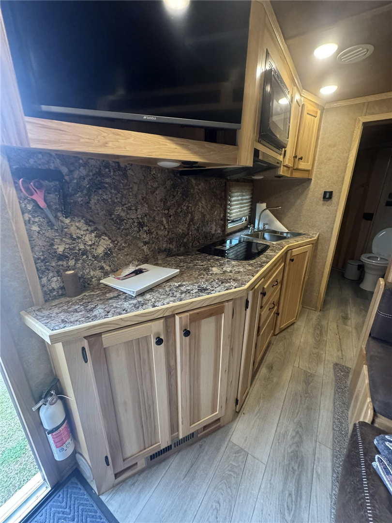 -Mini Fridge, TV, Sink in outdoor entertainment center