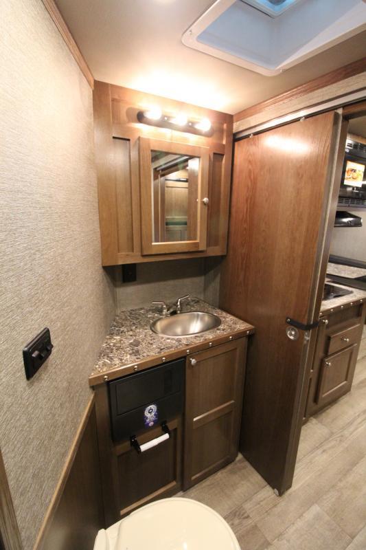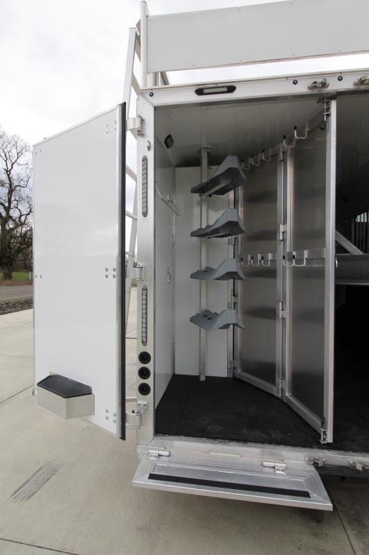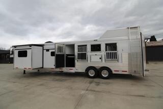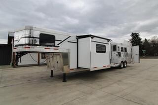 **REDUCED $7800*** Trailer Features: All Aluminum 8’Wide 8000# Axles Polished Aluminum Wheels Dual Hydraulic Jack Single Piece Aluminum Roof Spare Tire Cable Driven Slide Out Power Awning Exterior Water Spigot (2) 5 gal. LP Tanks (2) RV Batteries Extruded Aluminum Slats outside Horse Area Hay Rack w/Ladder Stainless Steel Nose Wrap Keyless Entry Full Front Riser Wall Cover 320W Solar Panel Double Tail Lights Living Quarters Area: A/C Gas Furnace Sofa/Sleeper Mattress Day/Night Shades Solid Wood Cabinet Doors LED Puck Lighting 10 gal. Gas Water Heater Dream Dinette Flip-Up Counter Top Extension Barnwood Linoleum Flooring Exterior Cable Hook up Stainless Steel Sinks 2 Burner Recessed Cooktop Dometic RV Fridge Convection Microwave Glass Shower Door Porcelain Toilet 12V Fan in Bathroom Horse Area: Stud Divider-1st Stall 55/45 Rear Doors Escape Door w/Drop Down Window Step at Escape Door Side & Rear Load Lights LED Lighting Padded Air FLow Dividers Feed Bag-1st Stall Rubber Wall Mats Rubber Floor Mats Pop-Up Roof Vent each Stall Drop Down Windows Head Side Sliding Windows Tail Side Tack Area: Collapsible Rear Tack Flip Down Step Bridle/Halter Hooks (4) Adjustable Saddle Tiers on Removable Post Blanket Bar Brush Tray LED Dome Light ** Descriptions Subject to Error** For more information on this trailer please contact Double J Trailers at 360-225-1234. Thank You! Financing available to qualified buyers! All trailer prices are cash prices. Thank you! Trades Welcome Two Lots To Better Serve You! Woodland Washington & Albany Oregon We have over 250 trailers in stock. Please view our entire inventory at [www.double-j.com](http://www.double-j.com/) thank you! *Double J imposes a surcharge of 3% on credit card purchases of amounts greater than $500*