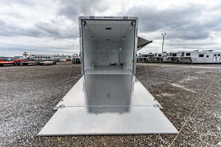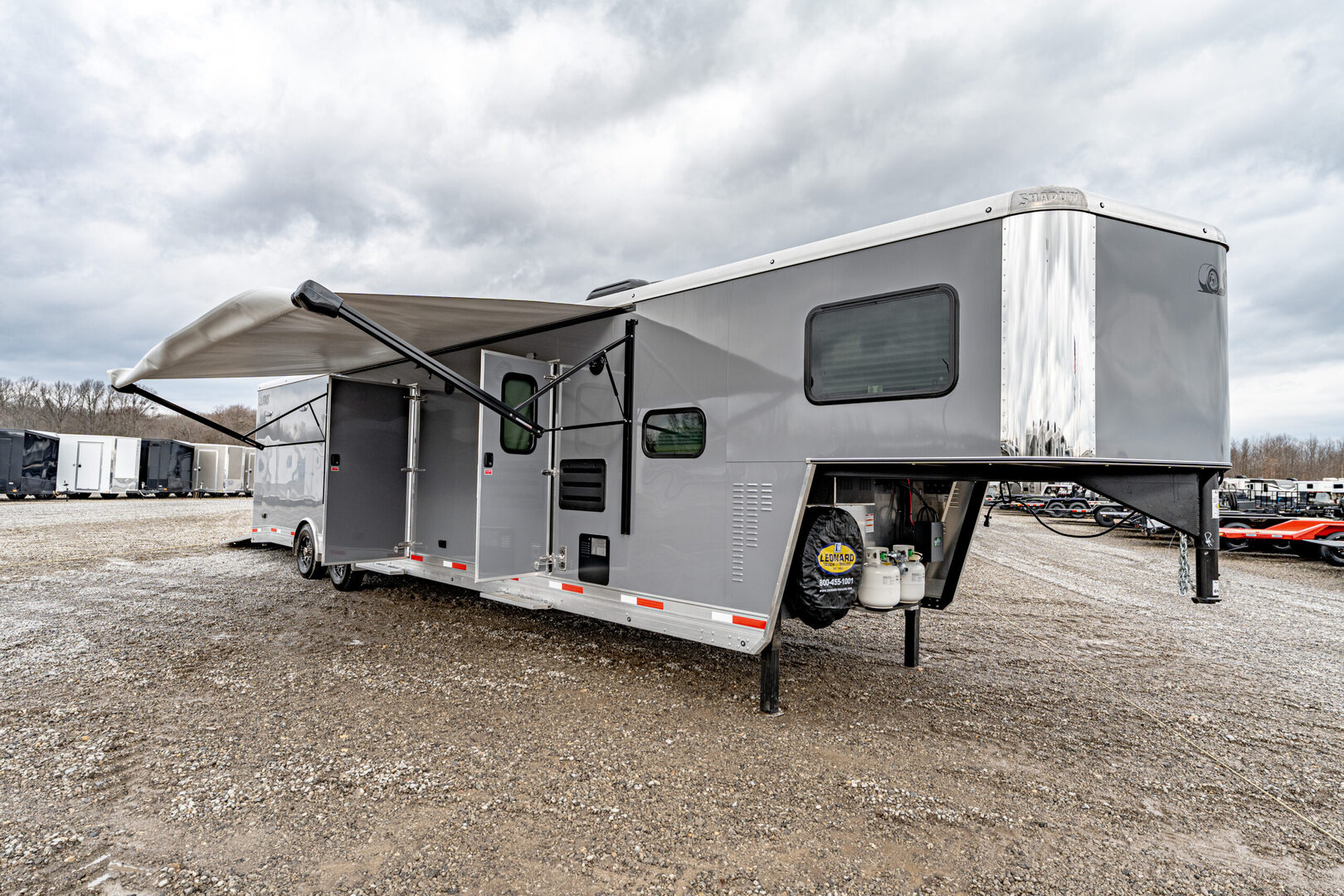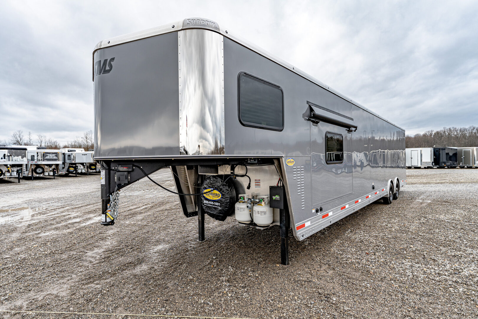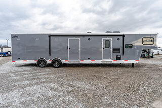 View Inventory: https://leonardtrailers.com/inventory/43650 Stock# 43650 New 2026 Shadow 85340-96-GN-2-8-14’LQ Gooseneck Toy Hauler Trailers With Living Quarters Model:85340-96-GN-2-8-14’LQ Warranty: 6yr-Structural 2yr- Bumper to Bumper  SMS Model: 85340-96-GN-2-8-14’LQ Dimensions: 34’ floor 42’ overall length (OAL) 8’5” wide 8’ tall Cargo Gooseneck, Living Quarter Slick skin, Hydraulic Jack - Dual Legs Drive Train: 8000# spread torsion axles, 16” wheels LT235-85R X 16 Load Range ’G’ radial tires Includes spare Cargo Area: 20’ garage Standard dove tail (3’x3’) Full-height rear ramp with spring assist 24” transition flap Diamond plate on rear ramp & transition flap Access door curbside in front Walls/ceiling lined and insulated with white aluminum sheeting 110V light package 2 manual vents in cargo area (front vent prewired for AC) Electric awning curbside Living Quarters: 14’ straight wall California king mattress 1 manual slide with fold-down sofa streetside Large shower Porcelain toilet 6.0 refrigerator Microwave Recessed 2 burner stove Stainless steel sinks Hot water heater Furnace Pocket door to bathroom 20” door to cargo Interior/porch light Air conditioner 15.5 with heat strip Exterior speakers   We offer outstanding financing options, accept trades, and can arrange nationwide NO HASSLE delivery! Inquire today for more information! (888) 333-6613 **We believe these specifications to be accurate. Any discrepancies are unintentional. Please verify information with a sales associate prior to purchase.** Stock Number:43650