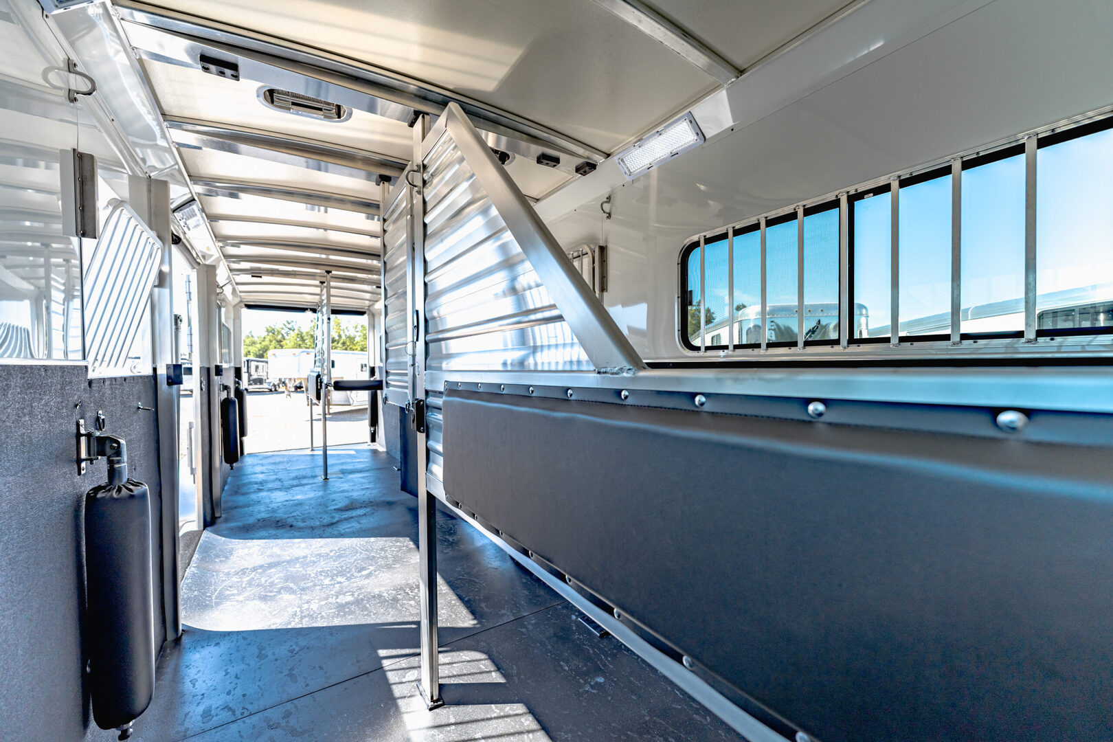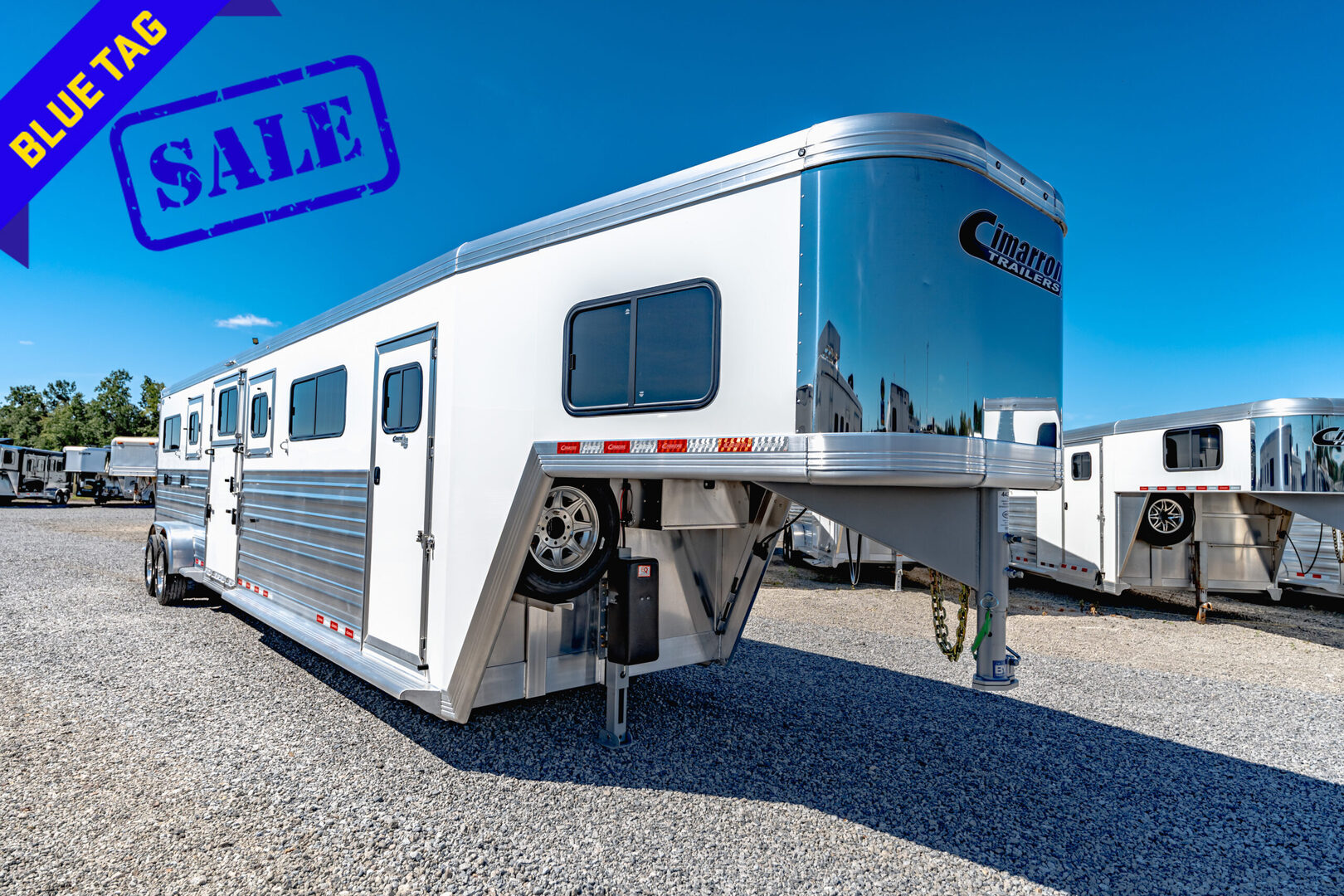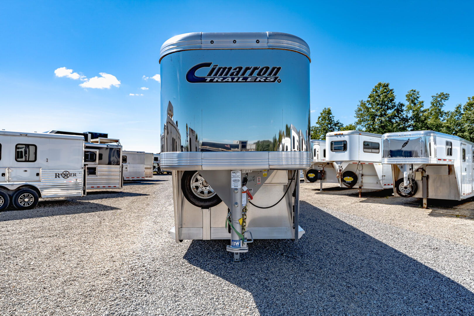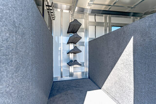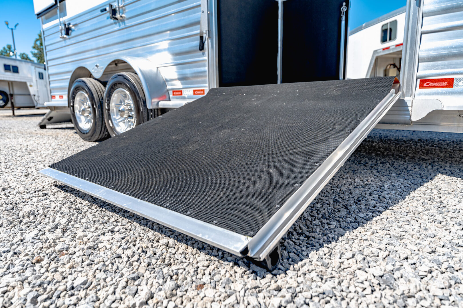 Drive train 7,000# Dexter torsion axles -extruded side slats at stall area, lower body running boards are full length, led awning lights, solid partition wall, full height and width of front tack wall, primary door front tack room door 32’’ wide, carpet floor, GN wall and GN deck, sliding type of windows for front tack, ramp 54’’ tall with swing around doors above in stall area, head side fold down type with safety bars feed doors, full center gate -bars above, ramps side -60’’ wide x54’’ upper door and rest. Strap, 2 partial dividers, swinging solid type for head grills, dome lights, adjustable saddle rack, added recessed paddle latch on side access door, window slider 19x34 in stall area, -in partition wall 54’’ from floor, centered, extra divider location, straight load to move both dividers to LH side wall, use 30’’ bolster pads on butt and breast bars, adjustable fold down bar at side ramp. Call for more details!!