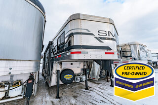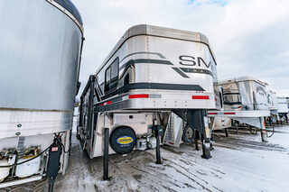 View Inventory: https://leonardtrailers.com/inventory/45416 Stock# 45416 Used 2024 SMC SL8411SR 4 Horse GN with LQ Trailer   General Information Exterior: XT / SS Construction: Aluminum Roof: Aluminum Primary Color: White Dimensions & Specifications Coupler Size: 2 5/16” Adjustable Coupler: Yes Length: 28’ 5” Width: 8’ Height: 7’ 6” Horse Area Type: Slant load Rubber Lining: Complete Escape Type:1 Full Walk Out Living Quarters Size: 11’ Awning Size: 16’ Living Quarters Options Ducted A/C Heat Strip / Ducted Furnace Generator Sofa / Dinette Sink – Kitchen Stove / Refrigerator Microwave / Oven Sink in Bath Toilet / Shower Tack Area Type: Rear Collapsible Tack Contents Feed Doors Saddle Racks Hooks Brush Box Blanket Bar Outside Tack Doors Door / Gate: Double Rear Doors Axles, Brakes & Mechanical GVW: 16,000 lbs Axle Size: 8,000 lbs Tire Size: 16” Number of Brakes: 4 Jacks: Dual Jack Type: Hydraulic Nose Type: Tapered Suspension & Electrical Empty Weight Suspension: Rubber Ride Spare Tire: Yes Brakes: Electric We offer outstanding financing options, accept trades, and can arrange nationwide NO HASSLE delivery! Inquire today for more information! (888) 333-6613 **We believe these specifications to be accurate. Any discrepancies are unintentional. Please verify information with a sales associate prior to purchase.** Stock Number:45416