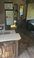 * Bedroom lots of closet space and cabinets with pocket doors for privacy