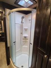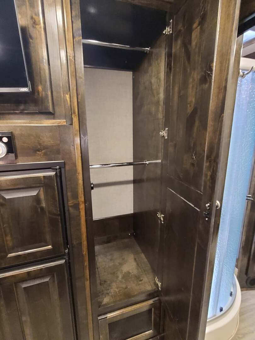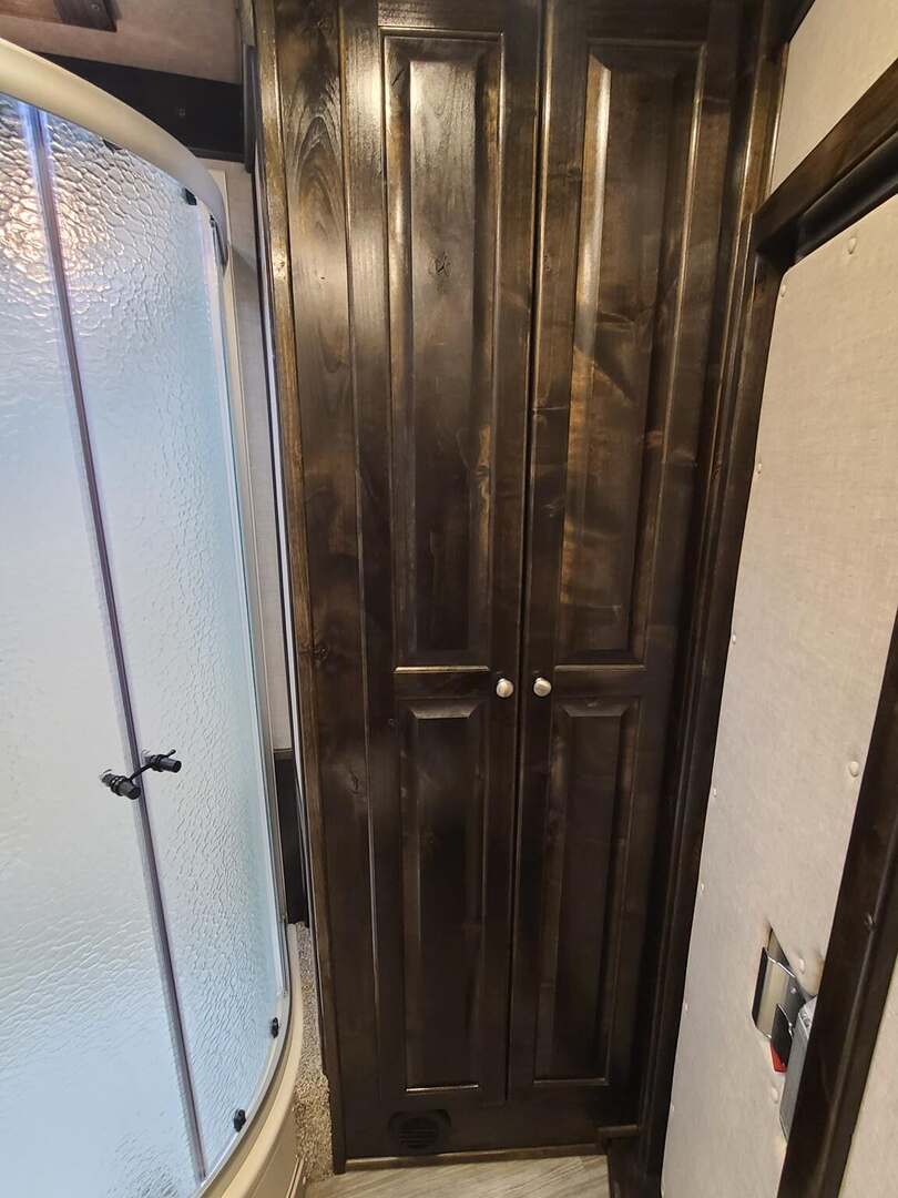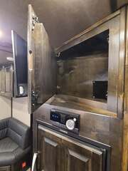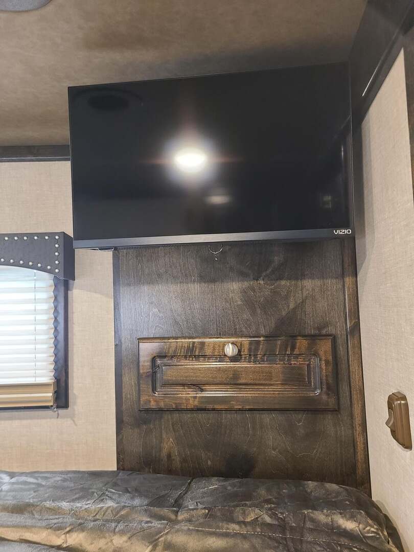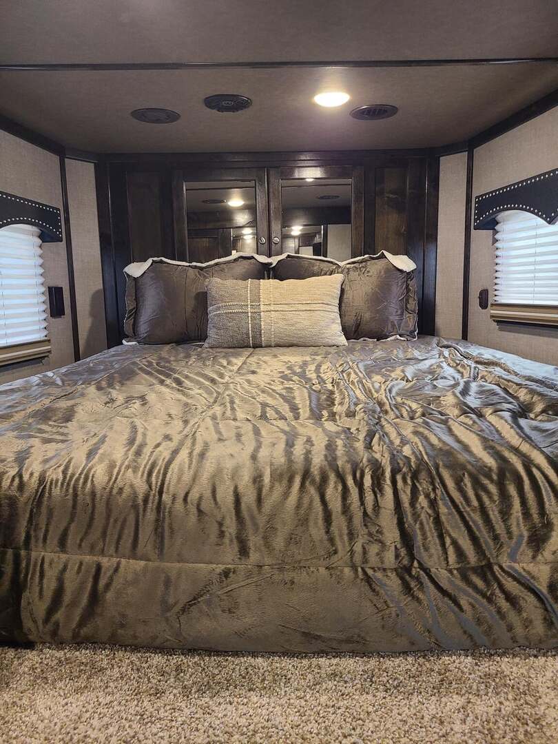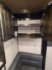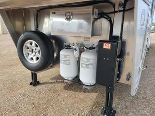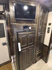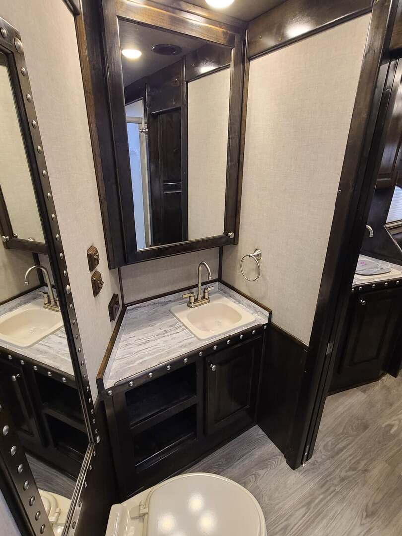 THIS TRAILER IS ON ORDER AND WILL ARRIVE IN MAY Platinum Coach 5 horse with 12’10” Proline XP by Outlaw Conversion  Proline XP by Outlaw Conversion features: Onan 4.0 generator with fuel tank behind saddle rack Flip down bunk over sofa, with corner bench...sleep 4 or 5! Two burner glass top cooktop Microwave with built-in vent hood Sinks in kitchen and bath 15,000 BTU A/C with HEAT PUMP 20,000 BTU furnace 6.0 propane / electric refrigerator 6 gallon water heater, 12V DC or 110V AC 60 gallon water tank Two 24” Smart TV’s one in living, one bed area AM/FM/CD/DVD player with 2 exterior speakers 14’ Dometic power awning with aluma guard cover 32” radius shower with power vent overhead Toilet in front of vanity / sink area Large closets in living and bath area 3 drawers under kitchen counter Two hat racks over door with sliding screen 24” walk through door to horse compartment Dual leg hydraulic jacks Double aluminum battery box Two 30# propane bottles Platinum Coach features: 8 x 35 x 8 tall Side load configuration LOADED rear tack, shelves, splint boots, EVERYTHING!! 4 mangers, escape door on first stall Drop down windows head and hip Drop down window bars on head side Flow through and spring-back dividers Stud divider on first stall 8’ enclosed hay pod  Three 8k axles, 14 ply tires, Aluminum wheels