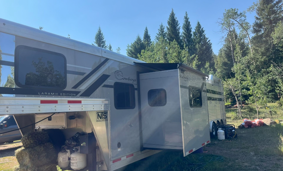 Amazing LQ cut gate stock with mid room tack/laundry Mud room. Ideal for long days at the rodeo grounds or lots of road time.