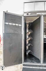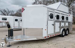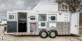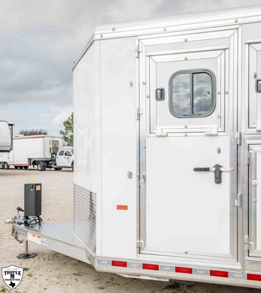 4H TRADITION BP SHOW STOPPER 21’6” FLOOR / 8’ WIDE / 7’4” TALL (3) MANGERS DROP DOWN WINDOWS ON BOTH SIDES HAY POD w/ PLATFORM & SLOPE NOSE EQUALIZER ELEC/HYD BP JACK EXTRA L.E.D LIGHTS PARTIAL FOOT LOCKER EXTRA BRIDLE HOOKS BRUSH TRAY / CARPET WALL / HAT SHELF BLANKET TREE ON TACK DOOR REAR TACK REAR RAMP CAM LOCK LATCHES ON DOORS (2) COMBINATION LOCKS SLIDE OUT STEP WHITE EMPTY = 6,100 GVWR = 18,500