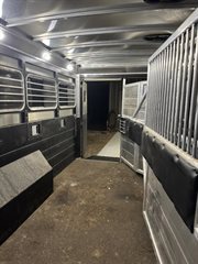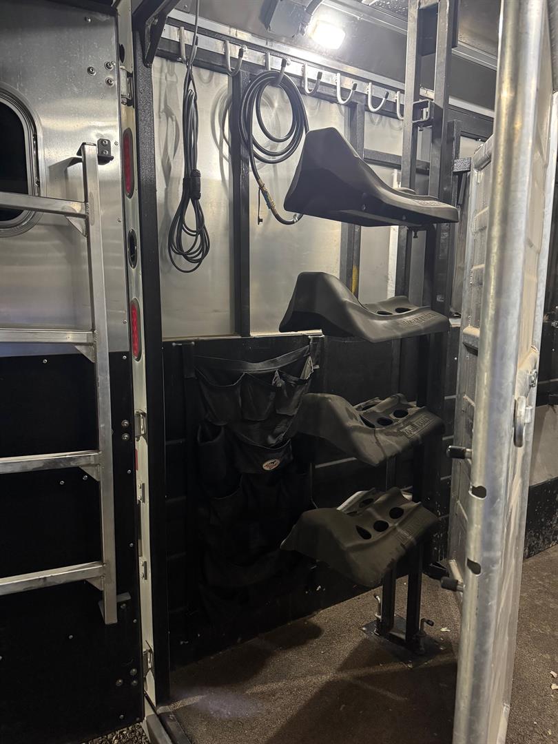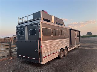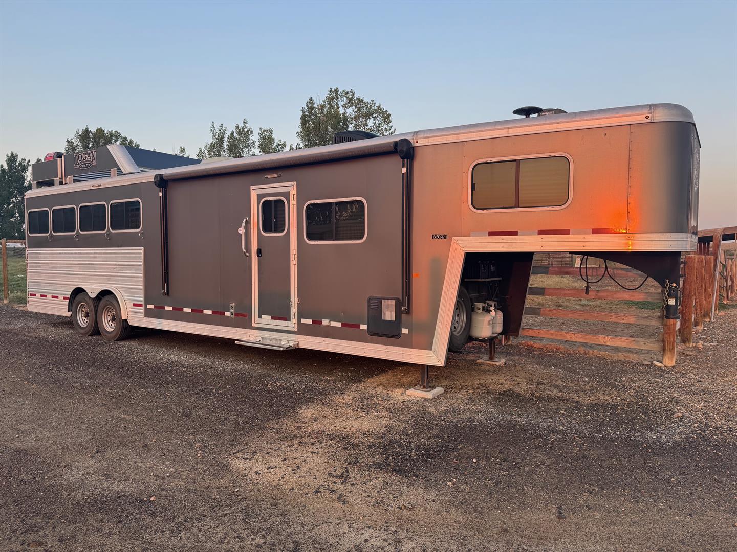 2019 Logan Coach Riot 4 Horse Living Quarters Trailer, customized and used mostly as a toy hauler.