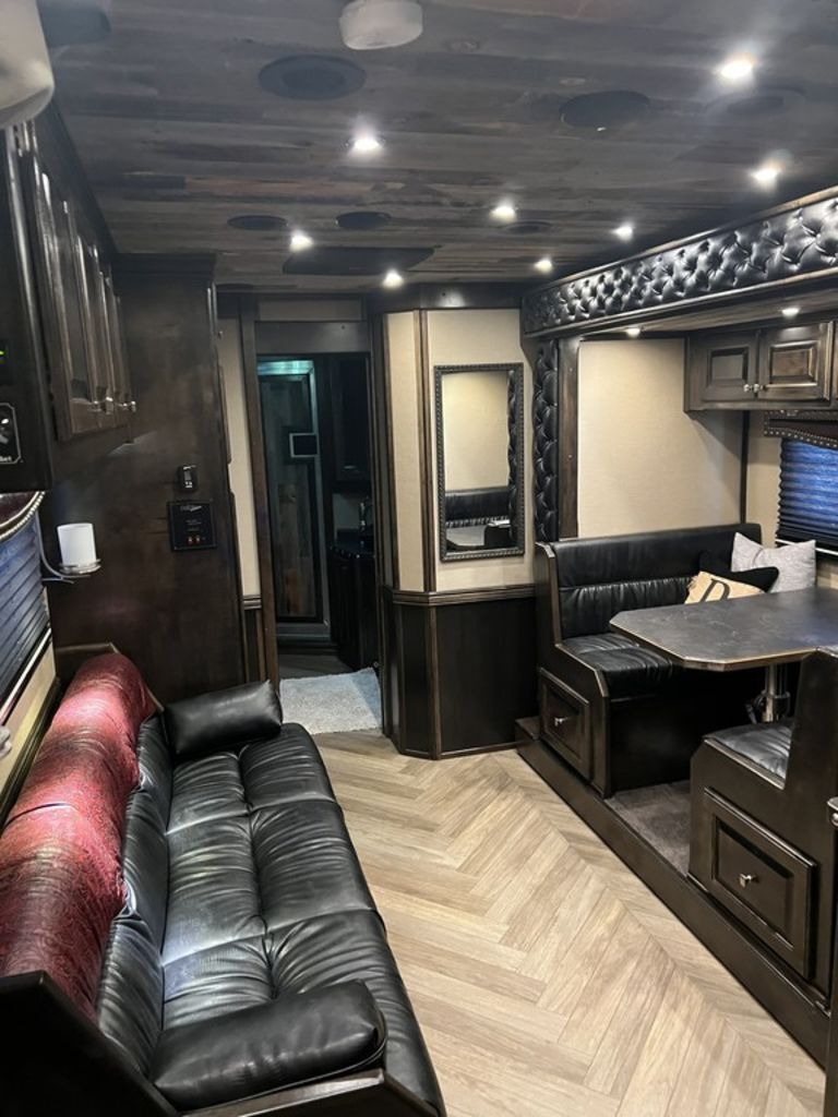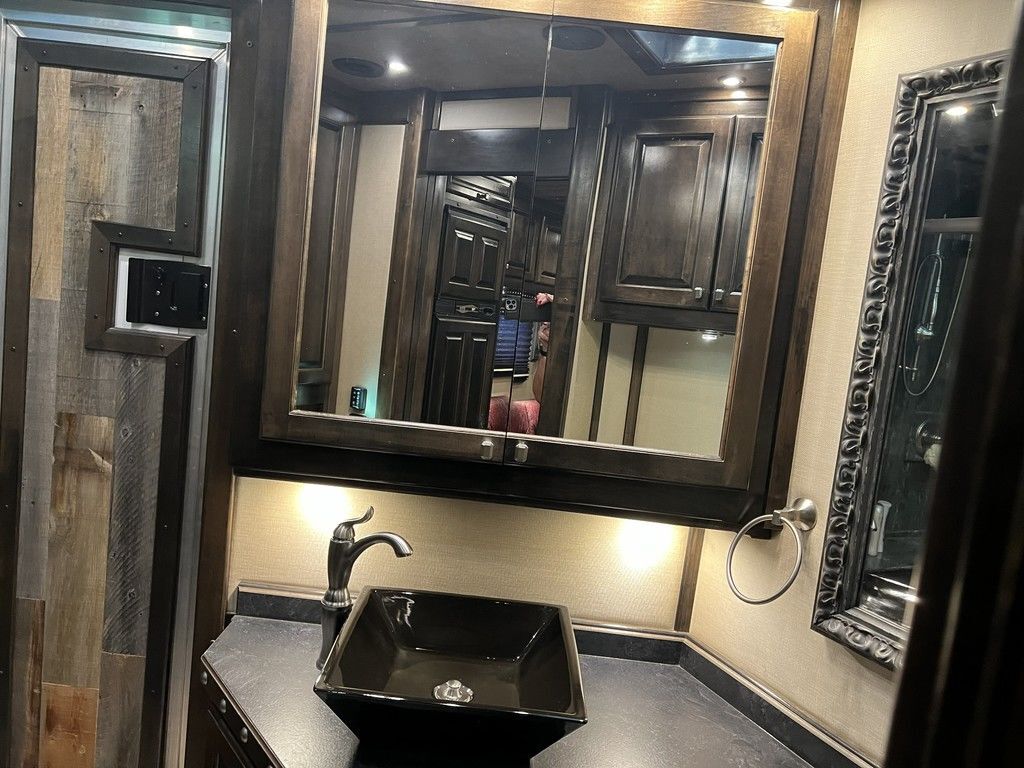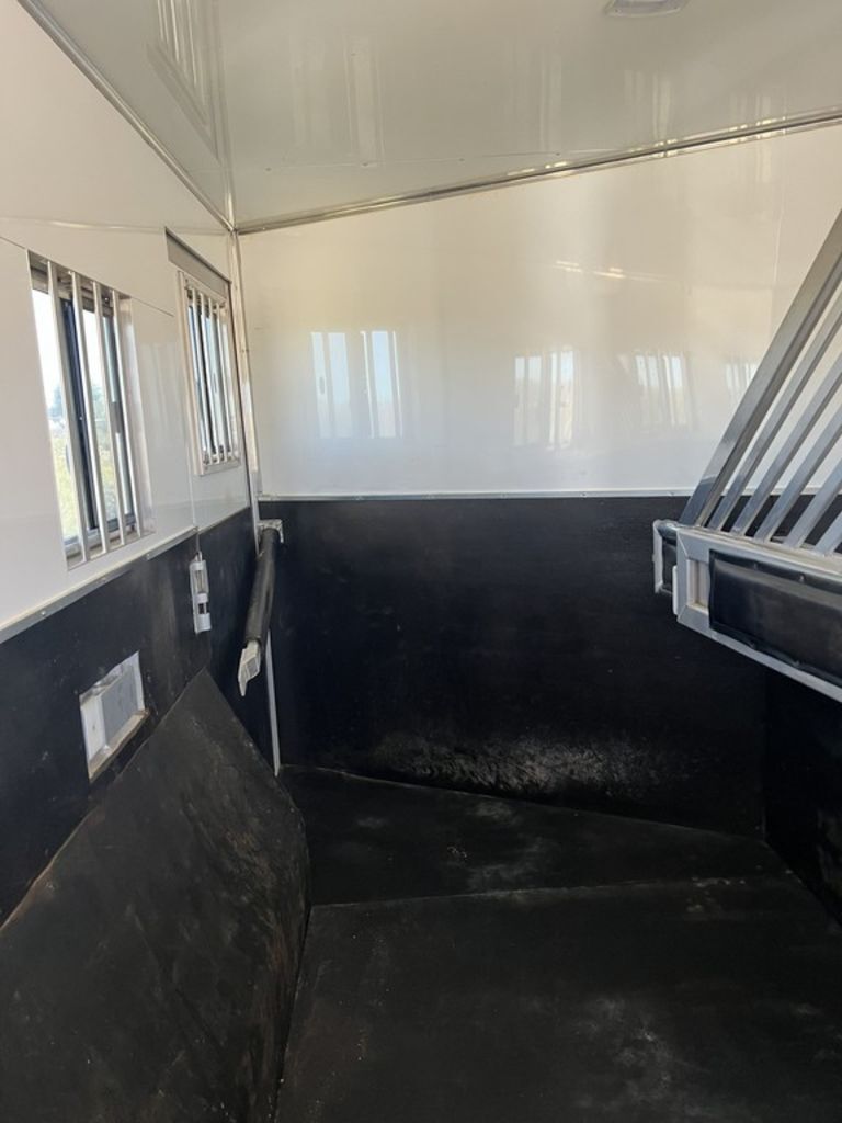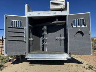 Appointment-only showings available. Please call to schedule. 2018 Bloomer Trailers 4 Horse 17’ 9” Living Quarters with an Outlaw Conversion *Trailer is located in Morristown, Arizona Appointment-only showings available. Please call to schedule. Features May Include: STRUCTURAL8’ Height 8’ Wide 17’ 9” Living Quarter Floor Length Overall Length4 Horse Side Load All Aluminum Framing EXTERIOR One-Piece Aluminum Roof Skin2 Batteries Power Awning Exterior Water Spigot Integrated Hay Pod With LadderGenerator BoxDual-Leg Hydraulic Jack (2) Propane TanksSTALL AREA4 Horse Side LoadAluminum Floors Floor MattsDrop Down Windows on Head and Tail SideFully Matted WallsInterior and Exterior Tie RingsTwo-way pop up vents Aluminum Padded Air Flow DividersLower Stud Wall (first stall)Escape Door in First Stall with Drop Down WindowExterior Step at Escape Door Mangers (Every Stall)Walk Through Door from LQ to Horse AreaTACK ROOMSolid Rear TackDouble Rear Doors CarpetedBridle Hooks Upper and Lower (4) Place Saddle Rack Brush Treys APPLIANCE RefrigeratorStainless Microwave Cooktop w/CoverINTERIOR DECORSolid Alder Cabinets And Trim Raised Panel Cabinet Doors Crown Molding Soft Touch WallsInsulated Ceiling And WallsCabinets Throughout Custom Window ValancesWindow ShadesDinette in Slide Steps to Bed AreaQueen MattressPLUMBINGDouble 20# Lp System12v On Demand Water Pump40 Gal Fresh Water Tank Black / Grey Holding Tanks (30 Gal Ea)Sewer Hose & CarrierHot Water Heater Radius Corner Shower W/ Glass Door Skylight Over ShowerBathroom Vent Fan W/ Power Dome Full Length MirrorGrey and Black Water Tank ELECTRICAL On Board Generator Detachable Power Cord Battery Disconnect SwitchGfi Receptacles Exterior Receptacle12v Reading Lights Led Lighting Package Lighted Grab Handle Power Awning W/ Shield AM/FM/CD/DVD StereoLED Lighting Throughout (2) Flat Screen TV 2 Interior and 2 Exterior Speakers Ducted 20,000 BTU Furnace Ducted 15,000 BTU A/C Thermostat BATHROOM Vanity, Medicine Cabinet with MirrorStandard Faucet with Mirror Porcelain Toilet with Foot Flush Shower w/Glass Door Please Note, this trailer is on consignment. Being Sold AS IS. This trailer is located in Morristown, Arizona Appointment-only showings available. Please call to schedule, 541-995-4884 *Please review all features with a salesperson. We try our best, but sometimes features and dimensions get mislisted. Thank you!*
