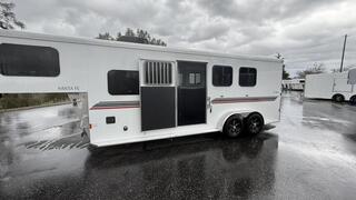 Hand crafted all aluminum living quarters trailer packed with the luxuries you want and need without being a monstrosity to tow! Warmblood sized for your horses and your head room in the bed, pass through door to the horse area escape door drop feed windows. swing out 3 up saddle rack, electric awning and hideaway screen door. for those hot summer days and a ducted furnace for those bitter cold winters.
