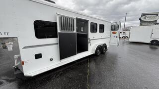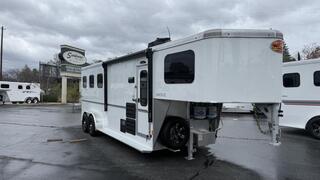 Hand crafted all aluminum living quarters trailer packed with the luxuries you want and need without being a monstrosity to tow! Warmblood sized for your horses and your head room in the bed, pass through door to the horse area escape door drop feed windows. swing out 3 up saddle rack, electric awning and hideaway screen door. for those hot summer days and a ducted furnace for those bitter cold winters.