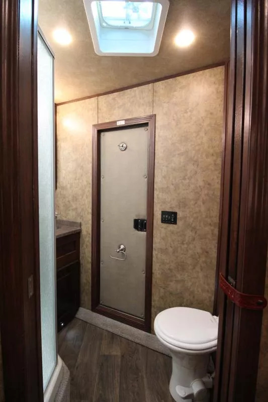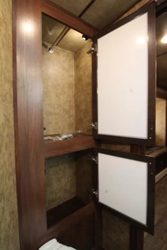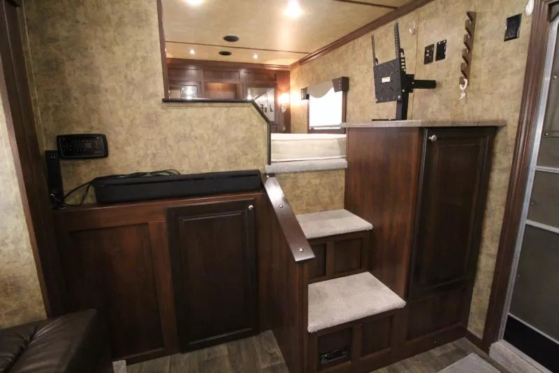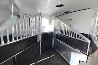 *Upgraded Features:* * 9’ Glide * Easy Care Flooring ILO Rubber Mats * .050 Metallic Black Side Sheets * Drawers under sofa * Fold up table * Ducted ceiling for A/C * Crown molding upgrade * Aftermarket Soundbar * Heavy Duty TV Mount * Fold up counter extension * Ramp * Lined & insulated roof in horse area * Stud panel * Airflow dividers *Standard Features:* * 8’0” Wide * 7’8” Inside Height * Five 16” 8 hole aluminum wheels w/10ply Import tires (includes a spare) * Full-width rear rubber bumper * Tear drop fenders * Extruded plank flooring w/ 2”x4” l-beams on 13” centers * Kingpin hitch w/ 2 5/16” adjustable coupler; Dual leg hydraulic jack * Breakaway switch w/ battery & slip hook safety chains * LED brake, running, and rear load light * 3/8 Transferrable warranty *Horse Area Features:* * Horse area walls and ceiling insulated & lined w/ white aluminum; Rubber installed 48” high w/ white aluminum lining above; Aluminum kickplate behind rubber lining * 27”x31” heavy-duty feed doors w/ drop down bars StreetSide; 27”x31” windows w/bars and screens curbside * Side access door with heavy duty drop feed door * Nylon safety straps at rear load door and side access door * Fold-up rear tack wall * Single piece aluminum roof w/one roof vent per stall * Two inside and two outside tie rings per horse * One interior LED light per divider in horse area; One interior LED light in rear tack * Airflow Dividers w/ Bars * Rear Tack which includes; Adjustable saddle rack, blanket bar, brush tray, and six halter hooks *Interior Features:* * 12’6” Short Wall * 9’ Slide out * Raised panel solid wood cabinet doors w/ European hinges; Vinyl wrapped cabinet faces, trim & door casings * Panel walls & ceilings * Decorative window trim w/ two tone valances and pleated shades on all windows * Laminate counter/table top edges * Soft touch door covering on camper door & walk through door * LED ceiling lights, courtesy lights, and porch light * Brushed nickel pulls, faucets, hinges, and accessories * Commercial grade linoleum flooring w/ moisture resistant 3/4” subfloor * Bluetooth enabled stereo w/AM/FM/CD/DVD player; Inside & Outside stereo speakers; TV antenna w/ booster * Jackknife sofa with cabinets and LED lighting above, storage behind and under sofa. * Insulated Bunk area floor w/tan carpet & queen size mattress * Front wardrobe w/two doors & middle storage; USB charger in wardrobe area * Shirt closet in bunk area * On demand pressure water system w/ city water hookup * 6 gallon gas water heater (direct spark) * One gallon fresh water tank; 2 waste water holding tanks * 55 AMP convertor * 13500 BTU air conditioner w/heat strip; 20,000 BTU ducted furnace * CO2, LP, and smoke alarms * 110V exterior receptacle &120V (30AMP)shoreline * Dual #20 LP tanks w/regulator * Dual deep cycle marine batteries * Outside water spigot; Sewer hose & holder *Kitchen:* * Double Stainless Steel sink w/ pull out faucet and sprayer * Recessed (2 burner) stainless steel stove w/lid and lighted/ vented stainless steel range hood * 1 cu ft stainless steel microwave * 8 cu ft refrigerator; Solid wood raised panel refrigerator door *Bathroom:* * Hollow core pocket door to bathroom * Bathroom sink w/ medicine cabinet above * Linen closet w/ light and mirrored doors * Neo-angle white shower w/opaque glass door; Skydome above shower * Porcelain Foot Flush Toilet * Power lift roof vent ** Descriptions Subject to Error** For more information on this trailer please contact Double J Trailers at 360-225-1234. Thank You! Financing available to qualified buyers! All trailer prices are cash prices. Thank you! Trades Welcome Two Lots To Better Serve You! Woodland Washington & Albany Oregon We have over 250 trailers in stock. Please view our entire inventory at [www.double-j.com](http://www.double-j.com/) thank you! *Double J imposes a surcharge of 3% on credit card purchases of amounts greater than $500*
