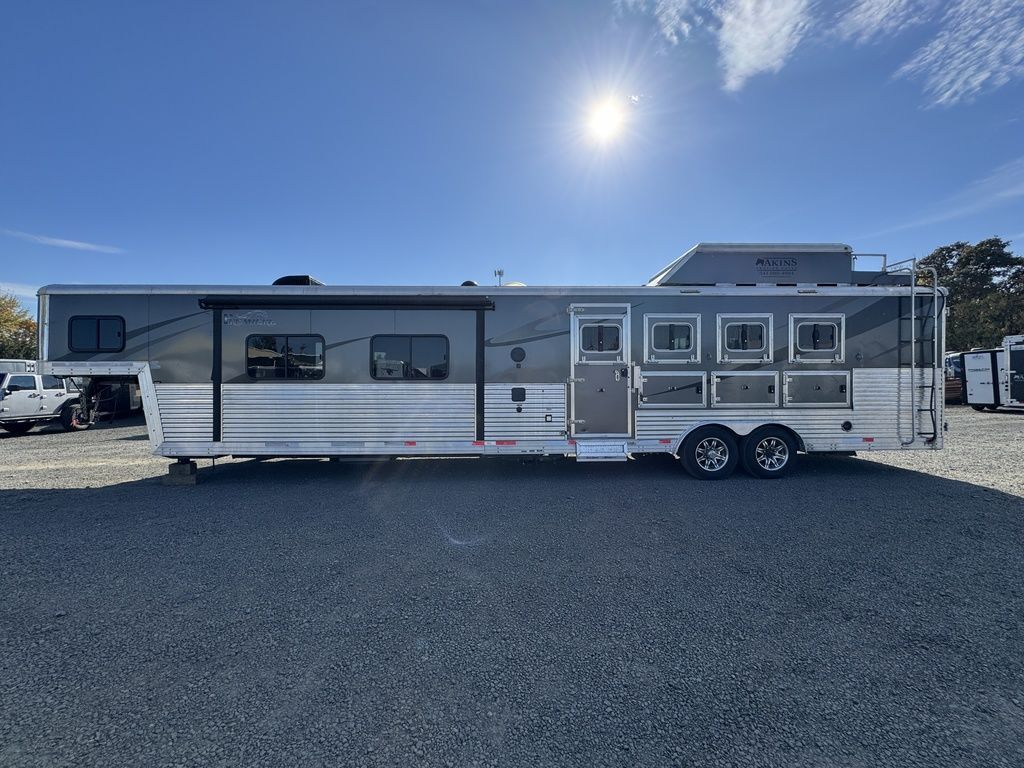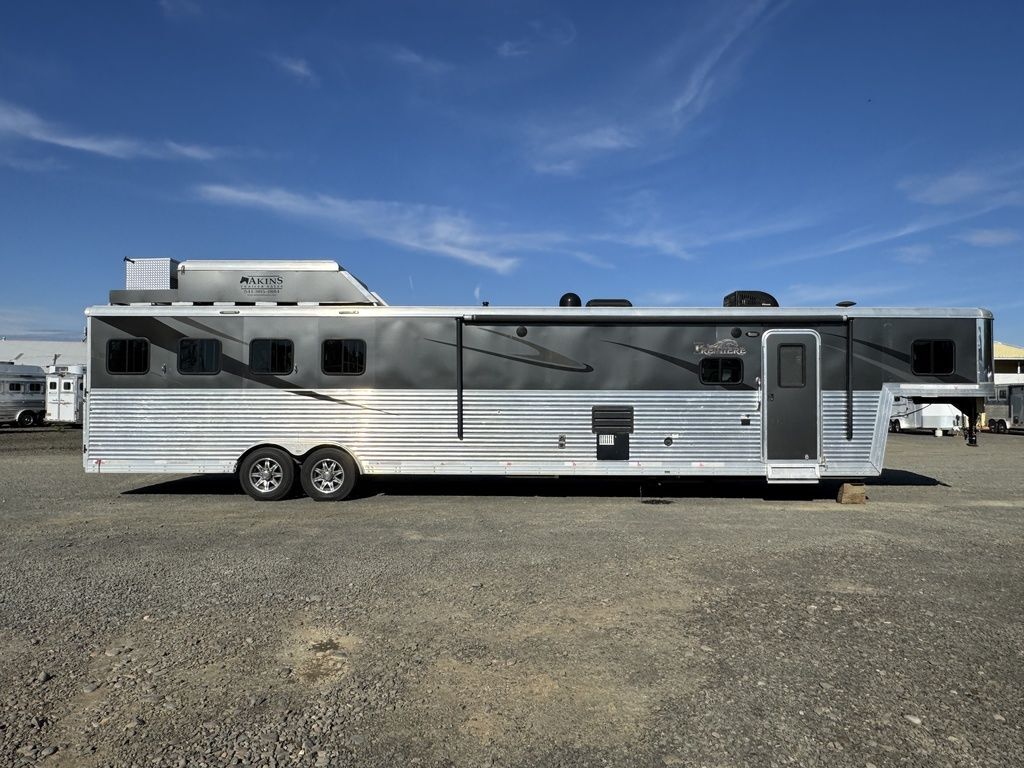 2016 Bison Premiere 8417 The luxurious PREMIERE by BISON is full of stunning features! The spacious interior includes a large flush-floor slide-out room.The spacious PREMIERE interiors features a full flush-floor slide-out, elegant window treatments, residential light fixtures, and more. You’ll love the overall functionality in the PREMIERE when preparing meals or entertaining guests.Features may include:8’ Wide 7’6” TallBolt on Torsion Axles mounted on axle carrierAll Aluminum StructureInsulated Aluminum WallsInterlocking Extruded Aluminum Plank Flooring48” Vortex Lined Kick PlateFully Collapsible Tack WallPadded Aluminum Air Flow Dividers w/ Gate SpringsEscape Door Pass thru DoorHeavy Duty Drop Feed Panel DoorsMolded Saddle rack, Brush Box, Bridle Hooks60/40 Rear DoorsSeamless aluminum with drip railLED Exterior and Interior LightsLighted grab HandleFlip-up Aluminum Camper Step3-way Vent (1) per stallHeavy Duty Rubber Stall Matting2 Rear 2 Side Load LightsSTS Wheel LinersPremiere Graphic PackageExterior water Spigot3-way Horse Area LightHorse Fans Spray Port with Hose and Quick DisconnectPolished STS Nose WrapBison Conversion StandardsFlush Floor Slide-out w/ topper AwningClassy Entertainment Center w/ LED TVHardwood Wind Walnut or Spiced Maple Cabinetry Vinyl Valances w/ Auto Roller ShadesClassic Residential Hardware and AccentsModena or Sienna Solid Surface CountertopsResidential Single Handle Oil Rubbed Faucets with STS SinksWood Grain Linoleum FlooringBison Exclusive “Visionary” SofaSoft Touch CeilingResidential Plush CarpetResidential Shower faucet w/ Hand WandAlmond Porcelain Toilet/ Porcelain SinkLED Interior Lighting2- way Led Porch / Insect LightTwo Deep Cycle Battery with Shut OffTwo Propane Tank with RegulatorCable InletOn Demand Fresh water SystemLarge Capacity Holding TanksRV RefrigeratorGlass Shower DoorDeluxe Mattress with Bedspread & Pillow Shams Please Note, this trailer is on consignment. Being Sold AS IS. All Horse Trailers, will be ran through our service department AFTER they are sold. Pickup & Delivery time is based on the service department’s schedule at the time of purchase. *Please review all features with a salesperson. We try our best, but sometimes features and dimensions get mislisted. Thank you!* Akins Trailer Sales541-995-4884* Located in Harrisburg, Oregon* Financing Available* Trade-Ins Considered www.akinstrailersales.com