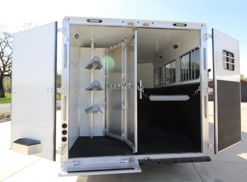 The Patriot is available at a budget-friendly price-point, while maintaining the Patriot’s heavy-duty construction and more available options and floor plans than ever before! **UPGRADES** * Porceline toilet * Power awning has weather guard and light * Entertainment package ( Includes a 24” TV , Stereo, and 2 Interior & 2 Exterior speakers. ) * Polished aluminum wheels * 10 gallon water heater * Convection oven/microwave * Recessed cooktop * Step at rear tack * Step at escape door * Feed bag at escape door STANDARD FEATURES TRAILER * All Aluminum Construction * 8’ Wide * 7K axels with load range E tires * Hydraulic Jack (8’ Wide) * 55/45 Rear Doors w/ Full Height Cam Bars * Single Piece Aluminum Roof * Spare Tire * Cable Driven Slide-Out (Specific to Floor Plan) * Exterior Water Spigot * (2) 20# LP Tanks * (2) RV Batteries * Gas Furnace * Extruded Aluminum Siding GALLEY * Provincial Hickory Decor package * Embassy Latte walls and ceiling * Vermont Gunmetal sofa and Valance with Diviani Stone inserts * LED Puck Lighting in Ceiling * Gas Water Heater (10 gal. ) * Dometic RV Fridge (8cu FT) * RV Microwave * Glass Shower Door * Solid Wood Cabinet Doors * (2) Burner Cooktop * Stainless Steel Sinks * Soft Touch Pleated Shades * Sofa/Sleeper * Mattress * 12V Fan in Bathroom * TV * Power Awning * A/C Unit * Exterior Water Spigot * 10 gallon water heater * Convection oven/microwave * Recessed cooktop * Single hat rack HORSE AREA * Air-flow dividers * LED Lighting in Horse Area * Escape Door w/ Drop-Down Window * Stud Divider 1st Stall * Aluminum Kick Plate w/ Rubber Horse Area * Side & Rear Load Lights * Feed bag at escape door * Step at escape door TACKROOM * Collapsible Rear Tack * Saddle Boss TM Saddle Tiers * Step at rear tack * Extra Bridle Bar w/ hooks ** Descriptions Subject to Error** For more information on this trailer please contact Double J Trailers at 360-225-1234. Thank You! Financing available to qualified buyers! All trailer prices are cash prices. Thank you! Trades Welcome Two Lots To Better Serve You! Woodland Washington & Albany Oregon We have over 250 trailers in stock. Please view our entire inventory at [www.double-j.com](http://www.double-j.com/) thank you! *Double J imposes a surcharge of 3% on credit card purchases of amounts greater than $500*