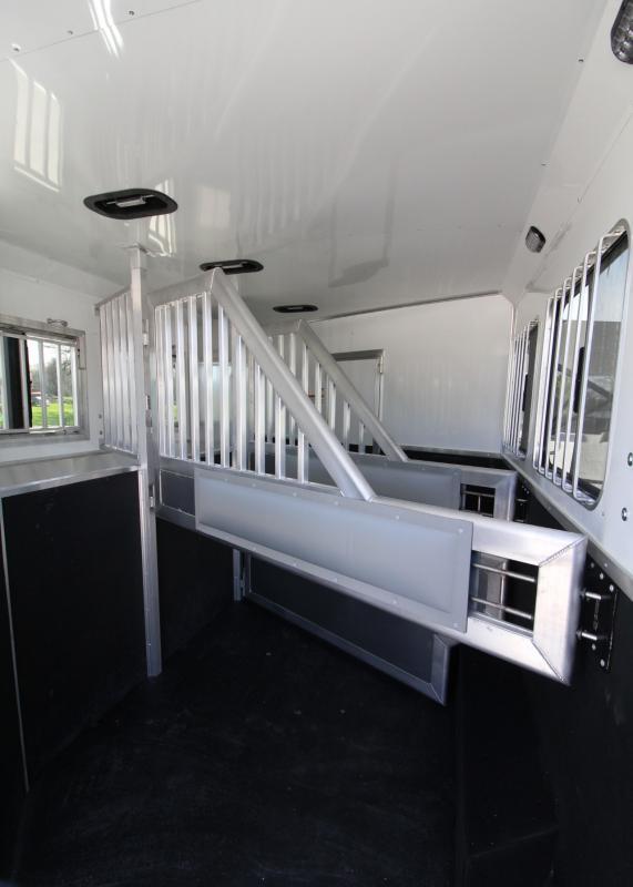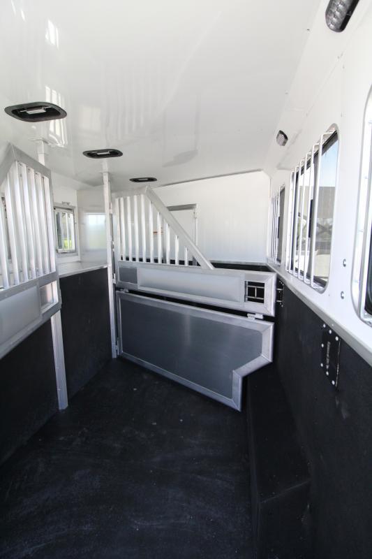 The Patriot is available at a budget-friendly price-point, while maintaining the Patriot’s heavy-duty construction and more available options and floor plans than ever before! **UPGRADES** * Porceline toilet * Power awning has weather guard and light * Entertainment package ( Includes a 24” TV , Stereo, and 2 Interior & 2 Exterior speakers. ) * Polished aluminum wheels * 10 gallon water heater * Convection oven/microwave * Recessed cooktop * Step at rear tack * Step at escape door * Feed bag at escape door STANDARD FEATURES TRAILER * All Aluminum Construction * 8’ Wide * 7K axels with load range E tires * Hydraulic Jack (8’ Wide) * 55/45 Rear Doors w/ Full Height Cam Bars * Single Piece Aluminum Roof * Spare Tire * Cable Driven Slide-Out (Specific to Floor Plan) * Exterior Water Spigot * (2) 20# LP Tanks * (2) RV Batteries * Gas Furnace * Extruded Aluminum Siding GALLEY * Provincial Hickory Decor package * Embassy Latte walls and ceiling * Vermont Gunmetal sofa and Valance with Diviani Stone inserts * LED Puck Lighting in Ceiling * Gas Water Heater (10 gal. ) * Dometic RV Fridge (8cu FT) * RV Microwave * Glass Shower Door * Solid Wood Cabinet Doors * (2) Burner Cooktop * Stainless Steel Sinks * Soft Touch Pleated Shades * Sofa/Sleeper * Mattress * 12V Fan in Bathroom * TV * Power Awning * A/C Unit * Exterior Water Spigot * 10 gallon water heater * Convection oven/microwave * Recessed cooktop * Single hat rack HORSE AREA * Air-flow dividers * LED Lighting in Horse Area * Escape Door w/ Drop-Down Window * Stud Divider 1st Stall * Aluminum Kick Plate w/ Rubber Horse Area * Side & Rear Load Lights * Feed bag at escape door * Step at escape door TACKROOM * Collapsible Rear Tack * Saddle Boss TM Saddle Tiers * Step at rear tack * Extra Bridle Bar w/ hooks ** Descriptions Subject to Error** For more information on this trailer please contact Double J Trailers at 360-225-1234. Thank You! Financing available to qualified buyers! All trailer prices are cash prices. Thank you! Trades Welcome Two Lots To Better Serve You! Woodland Washington & Albany Oregon We have over 250 trailers in stock. Please view our entire inventory at [www.double-j.com](http://www.double-j.com/) thank you! *Double J imposes a surcharge of 3% on credit card purchases of amounts greater than $500*