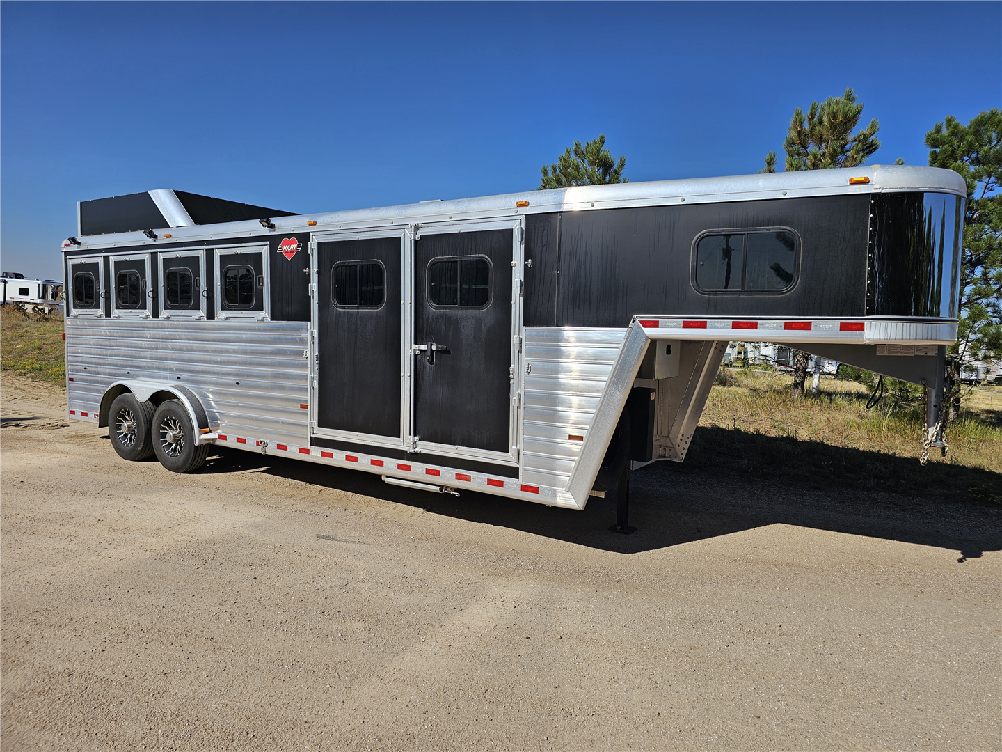 Elevate your hauling capabilities with the 2022 Hart T4HG Trailer, designed to meet all your horse hauling needs with ease and efficiency. This robust trailer boasts a sturdy construction that ensures durability and reliability on every journey. When you're transporting your horses, the Hart T4HG offers exceptional space and versatility.. Its advanced engineering guarantees smooth towing performance while maintaining stability across diverse terrains.