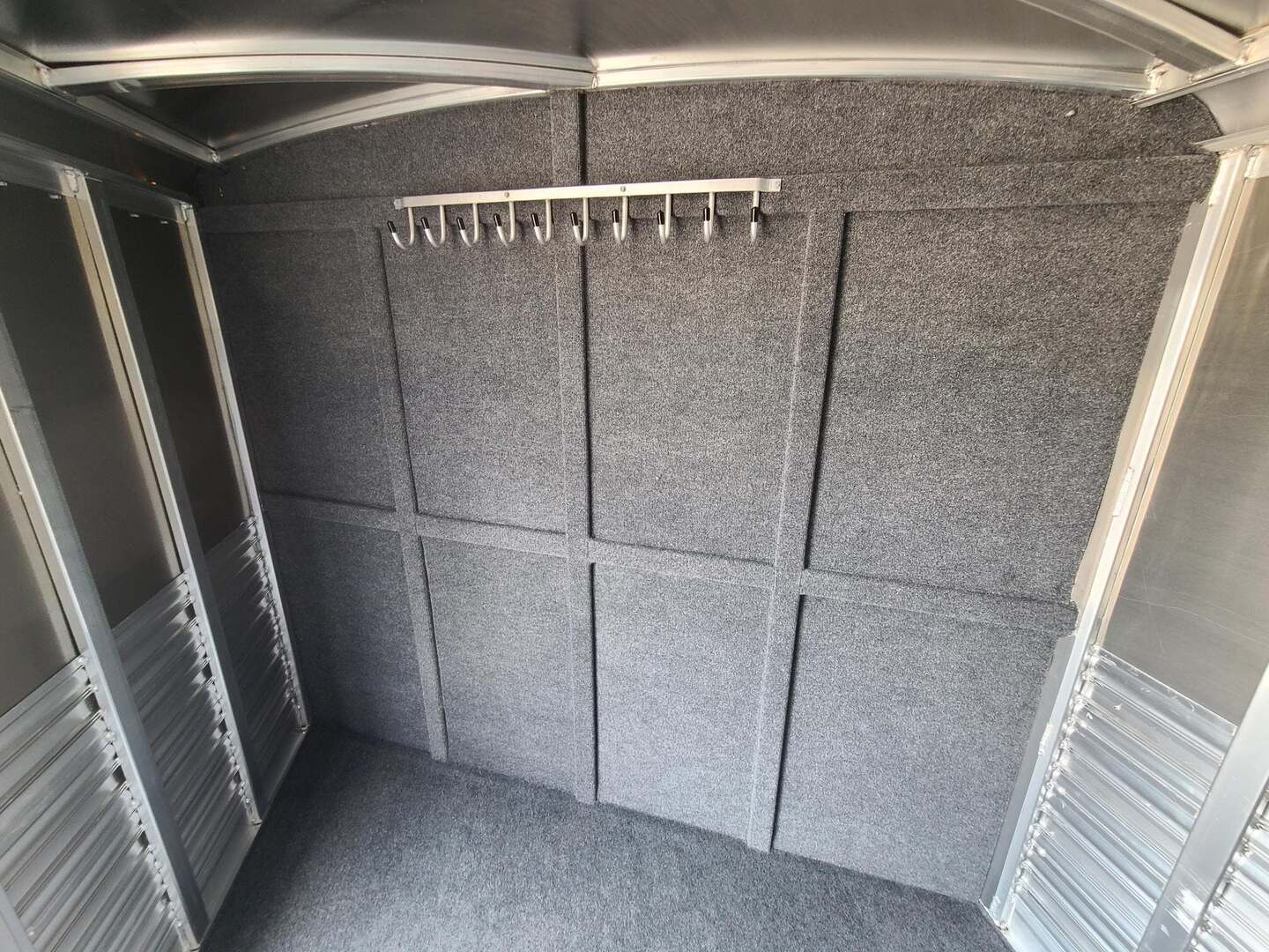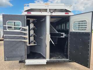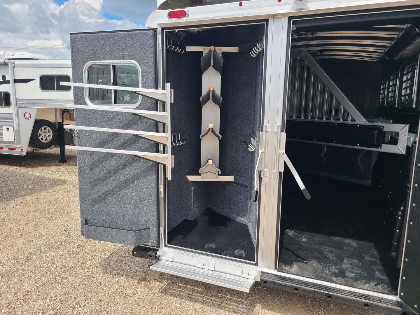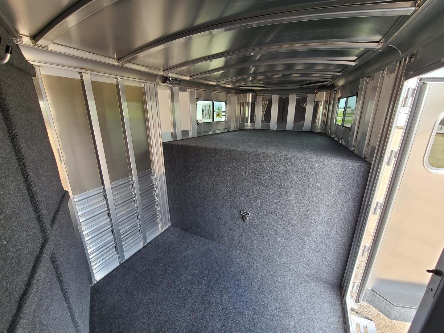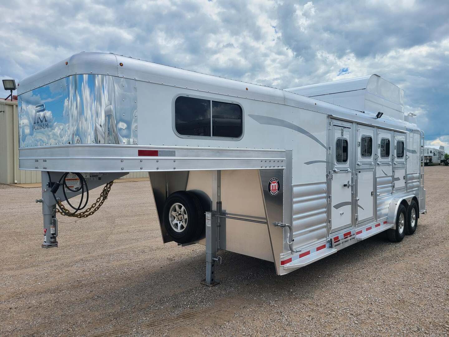 Platinum Coach Features:  4HGN w/ 4’ SW dressing room 7.5 wide x 21 long x 7 tall 6’ haypod with 3’ landing and ladder on driver side Electric brakes 7000# axles 235/80R 16E 10 ply tires Mag aluminum wheels 50/50 rear doors w/ windows Manger access doors Escape door at head w/ drop window and feed bag Flow through dividers Removable baby panel Pads on dividers and manger fronts 8 inside tie rings, 8 outside tie rings 4 center-line 2-way roof vents Floor mats in horse compartment Rubber rump and head wall Rubber on bulkhead wall and wheel wells 4 covered saddle racks in rear tack 2 pair of brush trays, one on rear tack door, one on dressing room door 4 swing out blanket bars in rear tack 6 LED dome lights 7 Round LED Lidhts on top rail 3 outside LED load lights 4 drop down windows w/ bars at head 4 drop down windows on hip Stainless steel on nose Carpeted Rear tack with double row of 10 hooks Carpet on bulkhead wall with 10 bridle hooks Steps at tack room door, escape door, and rear tack While we believe all information on this website to be accurate, please confirm features and price with a salesman.