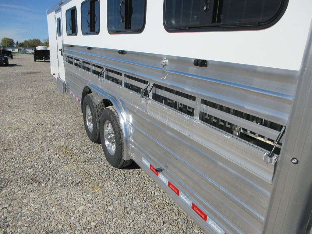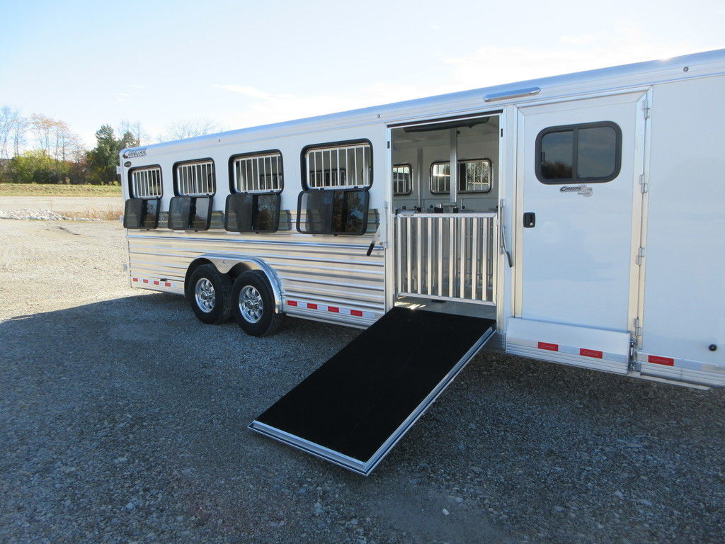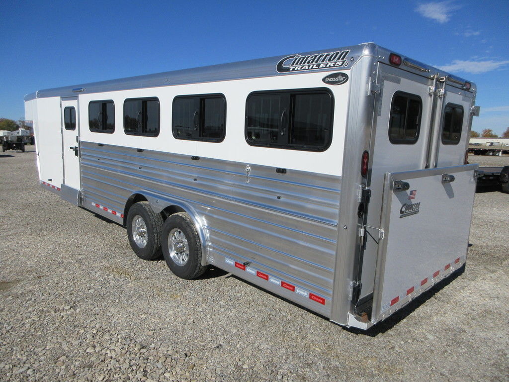 2026 Cimarron Showstar 10 pen, 25’ x 8’ x 6’4”, 2 7000lb Dexter Torsion Axles with electric brakes, Aluminum wheels, polished Stainless nose, 4’8” Tack with carpeted walls, Hooks, Airliner cargo track, 32” access door on Curb side, passthrough door to stock area, 20’ Stock area with 32” access door on street side, 10 adjustable pens with removable posts, feeder rails on pens, Insulated roof, Interior and Exterior LED lights, 8 pop up roof vents, 8 fold down windows and fold down lower air gaps. 48” side ramp, 50/50 Rear gates with fold down ramp. Trades considered, financing available with approved credit. Main Trailer Sales, LLC www.maintrailersales.com 812-524-7986 Stock#TC017723 2026 Cimarron Showstar 10 pen, 25’ x 8’ x 6’4”, 2 7000lb Dexter Torsion Axles with electric brakes, Aluminum wheels, polished Stainless nose, 4’8” Tack with carpeted walls, Hooks, Airliner cargo track, 32” access door on Curb side, passthrough door to stock area, 20’ Stock area with 32” access door on street side, 10 adjustable pens with removable posts, feeder rails on pens, Insulated roof, Interior and Exterior LED lights, 8 pop up roof vents, 8 fold down windows and fold down lower air gaps. 48” side ramp, 50/50 Rear gates with fold down ramp. Trades considered, financing available with approved credit. Main Trailer Sales, LLC www.maintrailersales.com 812-524-7986 Stock#TC017723