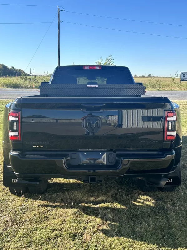 2024 Dodge Ram 3500 Big horn Crew Cab 4x4 Long Box PRICE REDUCED FROM $69,500.00 TO $65,900.00 Standard Equipment - Advanced multistage front air bags, supplemental front seat mounted side air bags, supplemental side curtain front and rear air bags, parkview backup camera, electronic shift on the fly transfer case, 3.73 axle ratio, hill start assist, electronic stability control, electronic roll mitigation, traction control, trailer sway damping, trailer brake controller, 730 amp maintenance free battery, 180 amp alternator, sentry key theft deterrent system, remote keyless entry, tailgate ajar warning lamp, uconnect 3 with 5 inch touch screen display. Optional Equipment - Diamond Black crystal pearl coat exterior paint, Premium cloth bucket seats, heated steering wheel and seats, 5th wheel gooseneck towing prep group, night edition, park sense front and rear park assist system, black headlamp bezels, body color door handles, body color grille surround, painted front bumper, painted rear bumper, Level 1 equipment group, glove box lamp, selectable tire fill alert, apple car play, google android auto, power heat and fold and telescoping mirrors, 8 way power adjustable driver seat, front fog lamps, forward and reverse utility lights, leather wrapped steering wheel, 2 way power lumbar adjustable driver seat, 4G LTE wifi hot spot capable, ram connect capable, 2nd row in floor storage bins, 220 amp alternator, front and rear rubber floor mats by Mopar, 4.10 axle ratio, 6.7L I6 Cummins HO turbo diesel engine, 115 volt auxiliary front power outlet, exterior 115V AC outlet, 400W inverter, flat cab length painted side steps, 50 gallon fuel tank, 9 alpine speakers with subwoofer, LT235/80R17E tires, 8.4 inch touch screen display, dual zone AC control, trailer tow package, Sirius XM ready, dual rear wheels, full size spare, box and rear fender clearance lamps, 17” x 6.0 Black/ machined alum dual rear wheels, blind spot with tag trailer & cross path detection, LED tail lamps, remote start system, Spray in bedliner by Mopar. This Truck is ABSOLUTELY PERFECT! Call our sales department at 940-365-9919 After hours calls/texts 612-381-6782
