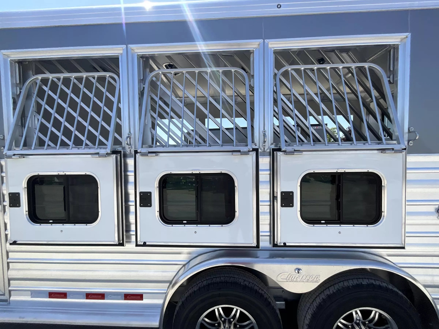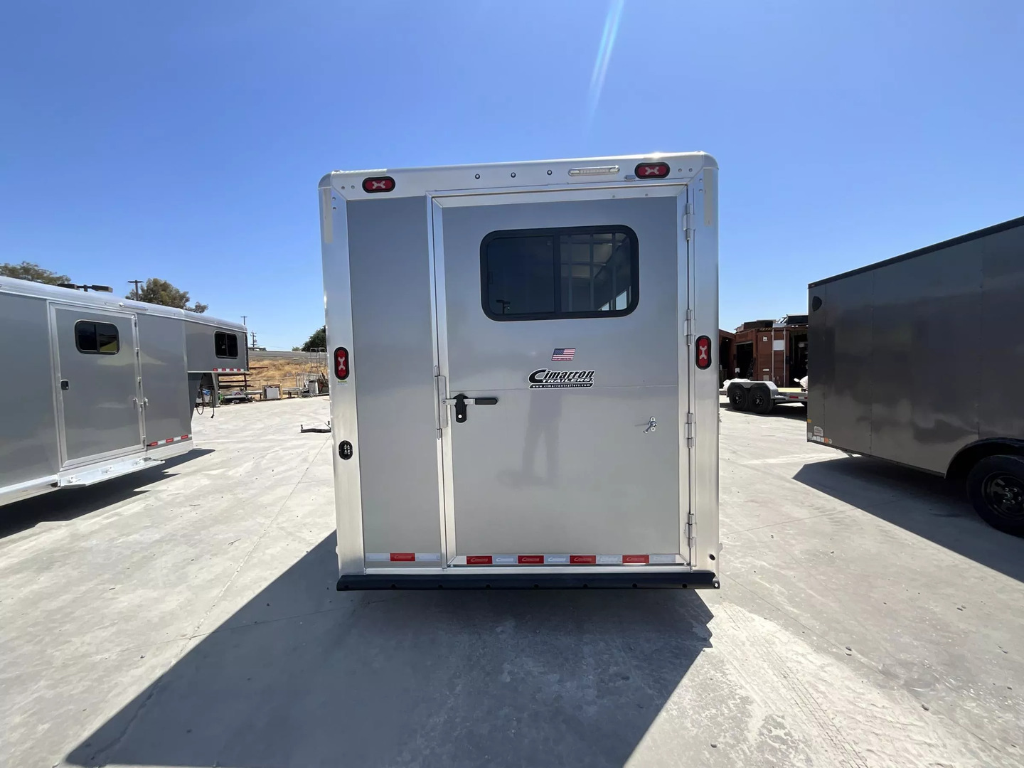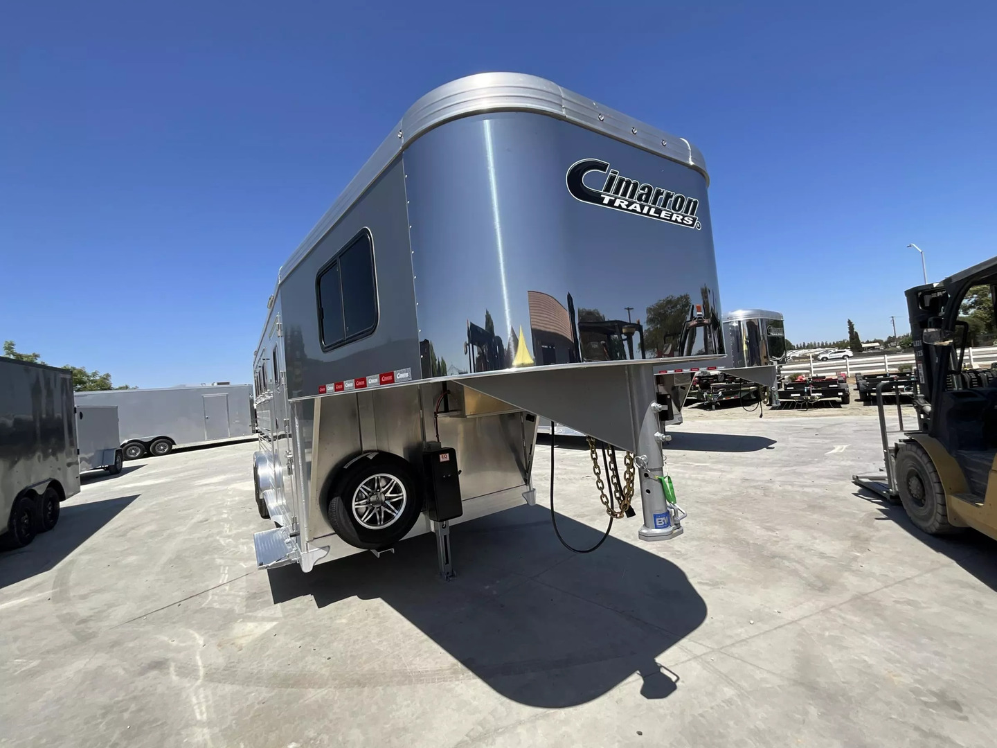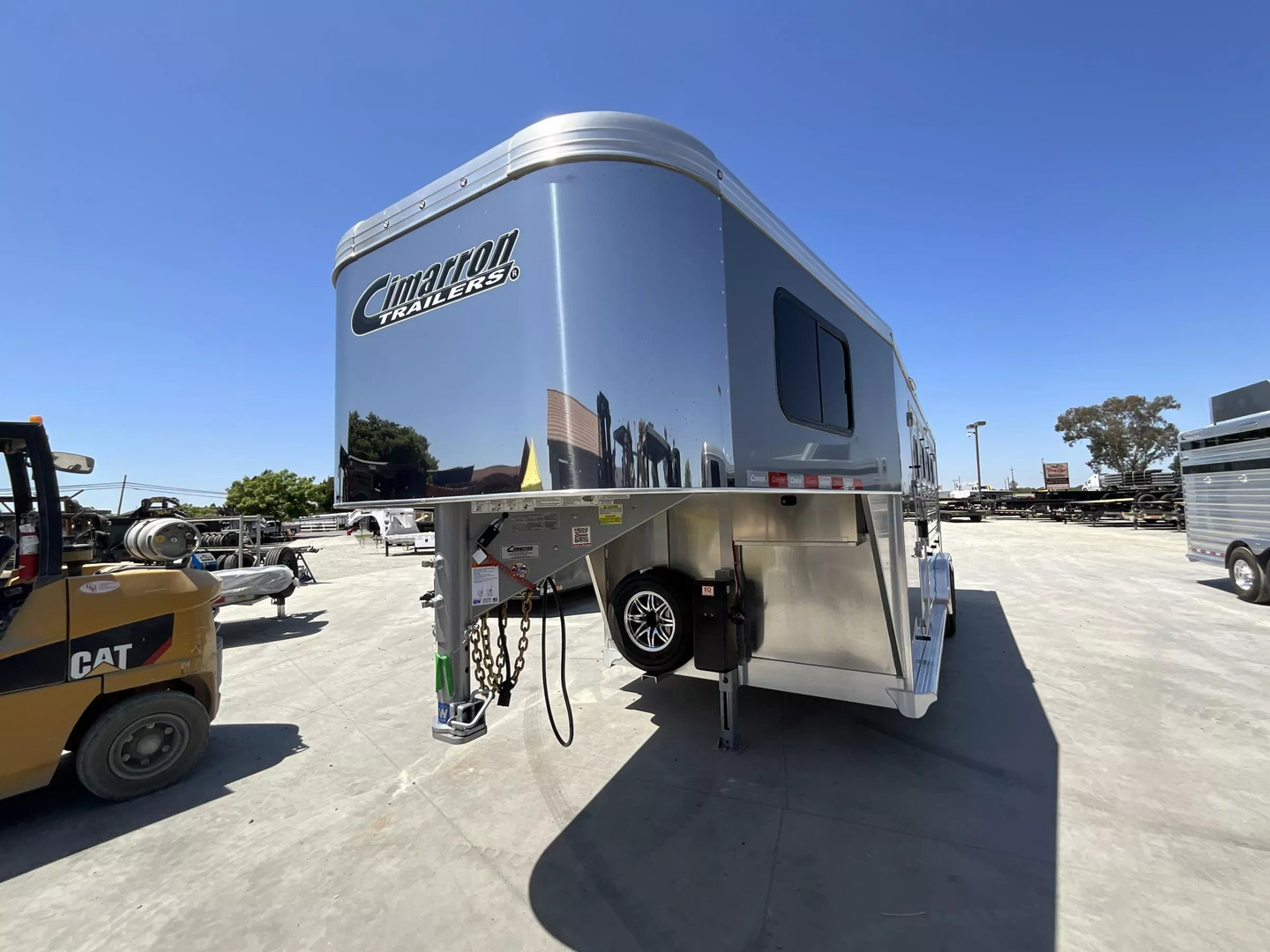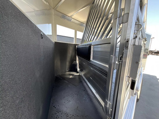 *** Introducing the 2026 Cimarron Trailers NS4G-RTG 4-Horse Slant Gooseneck Trailer! The ”Ready-To-Go” (R.T.G.) models from Cimarron are packaged with convenience in mind, offering a perfect blend of efficiency, user-friendly features, and organized tack rooms. You’ll get all the standard features you’ve come to love from Cimarron, plus added conveniences that make the R.T.G. an industry leader in value. *** Upgraded Features for Enhanced Comfort & Convenience This 2026 model comes with several enhancements to elevate your hauling experience: * Spacious & Tall: With an upgraded 7’6” width and a generous 7’7” interior height, your horses will have ample room. The 53” drop wall adds to the overall design. * Sleek Finish: The trailer boasts a modern Silver Metallic sheet color, giving it a polished look. * Effortless Operation: A single electric/hydraulic jack with a 12-volt battery & compartment makes hitching and unhitching a breeze. * Superior Lighting: Four LEDs with red lenses, ten LED button-type lights, one 8” LED awning light, and three 16” LED awning lights provide exceptional illumination for safety and convenience. * Organized Tack & Storage: A dedicated broom closet keeps things tidy. The rubber mat floor in the tack room, along with carpeted gooseneck wall and deck, adds comfort and durability. * Flexible Horse Compartments: Enjoy fold-down feed doors on the butt side, one full divider, and three telescopic dividers for adaptable horse configurations. * Horse Safety & Comfort: Twelve D-rings provide ample tie-down points. Six side paddings, one chest restraint, and one butt restraint ensure your horses travel securely and comfortably. * Interior Amenities: Six dome lights, two bridle hooks, one brush tray, one clothes bar, and four swing-out blanket poles keep your tack organized and accessible. *** Standard Features You Expect from Cimarron Cimarron’s commitment to quality shines through in these robust standard features: * Robust Connection: A 2-5/16” adjustable coupler with safety chains and a breakaway kit ensures a secure hook-up. * Durable Build: Features an 8’ long nose with a 2’ taper for improved aerodynamics, and a fully insulated roof with a 1/2” thickness for R3 thermal value. * Smooth Ride: Rubber torsion axles with electric brakes provide dependable stopping power and a comfortable ride. * Premium Wheels: Radial tires on aluminum wheels are balanced and nitrogen-filled for optimal performance. * Strategic Windows: 19”x34” windows in the gooseneck nose and 19”x34” sliding windows with welded bars (hip side) offer ventilation. * Easy Access Doors: A 42” wide dressing room door with a deadbolt latch and windows, drop-down feed doors with windows and safety bar grills (head side), an access door on the streetside at the 1st horse with a drop-down feed door, and double rear doors with windows provide excellent accessibility. * Thoughtful Hardware: A 4” rubber docking bumper, two exterior tie rings per stall (interior and exterior), swing-out saddle racks, a 25-gallon water tank, a boot box, a shelf with a clothes bar (gooseneck models), and a brush tray enhance utility. * Comprehensive Lighting: LED load light at the rear, LED dome and clearance lights, a 7-way plug and wiring, recessed exterior light switches, LED high and low turn/stop signals at the rear, and a flood light on the curbside ensure maximum visibility and safety. *** This 2026 Cimarron NS4G-RTG trailer is truly ready for any adventure with you and your horses! *While we always strive for complete accuracy, please confirm all specifications with one of our sales representatives.*