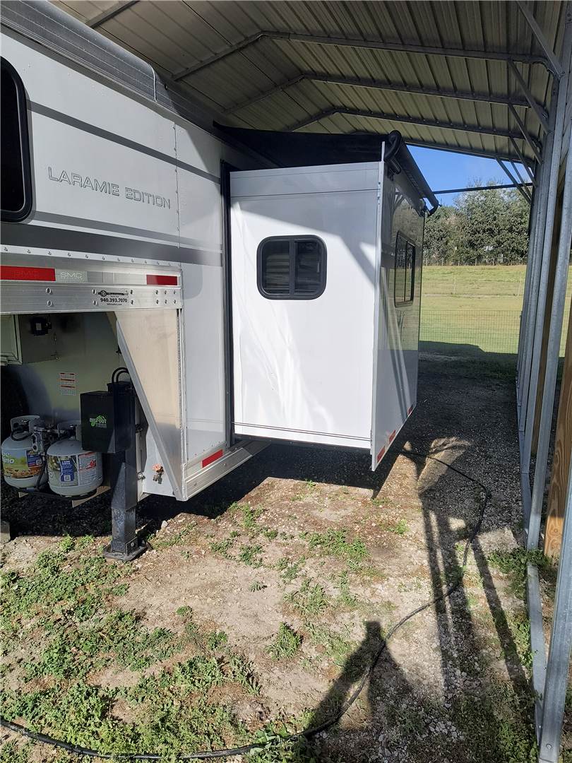 11 ft lq with a slide, large refrigerator, mangers,drop windows on both sides,new batteries, tires, awning fabric, always stored inside, hay pod, dinnett with storage, price is OBO, motivated seller located in central Florida