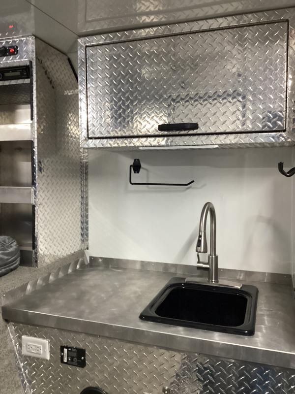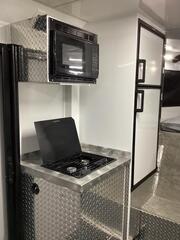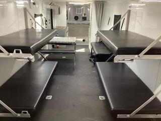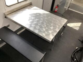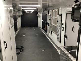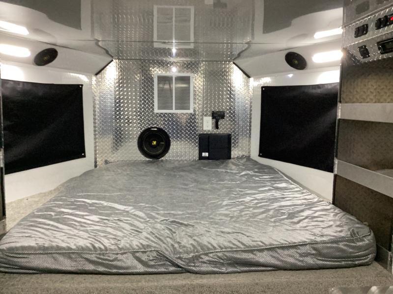 Upgrades: 40 gal. Fuel Cell w/Pump 24 x 30 Window 7.5 Gallon LP Tank Upgrade Dual Air Conditioners w/ 50 Amp Service Power Awning Porch Light (extra) Power Rear Ramp Solar System (100 watt) Speakers (Exterior) Interior: * Tread Brite Lower Wall Liner * Carpeted Gooseneck Area * 14x14 Vent * (7) Coat Hooks * Helmet and Oil Shelf * Fuel Door * Man Door on Drivers Side (10) Recessed Tie-Down Hooks * 24x30 Egress Window Interior Walls and Ceiling Lined with White Aluminum LED Lights * Speakers (Exterior) Stereo w/Kicker Amp, Sub and Speakers Hight powered Vent * Roll-over Sofa Shower/Toilet Combo * (2) Bed (bunk bed style) Enclosed Diamond Plate Cabinet (36 with shelf) Inverter (1000 Watt) Picnic Table w/ Benches (extra) Construction: * 99 Inside Width * 82 Inside Height * Lined and Insulated Roof/Walls * Rear Ramp -- 92 W x 82H * Man Door Front Driver’s Side * Converter Package with 2 outlets * (2) 6 Volt in Series Batteries * Fold-up Kitchen table with benches * USB Docking Station * GN Mattress * GN Windows * Coat Hooks * Mirror * Drop Legs for Rear Ramp Porch * (2) 36 storage cabinets with shelf * (2) Fold down beds (Bunk bed style) * Pre-wire for A/C with 14--14 Vent * 24x30 Egress Window Passenger Side * 40,000 BTU Furnace * (2) 5 Gallon Propane Tanks * 6.0 cu. Ft. Refrigerator GN * 50 Gallon Fresh Water Tank * 6 Gallon DSI Water Heater * Shower/Toilet Combo * Exterior Shower with Curtain * Microwave * Porch Light * Rear Flood Light * Spare Tire & Wheel * Auxiliary Propane Hookup Exterior: * Aluminum Wheels * Tread Brite Gravel Guard * Stainless Steel Nose * Enclosed Gooseneck Front * LED Lights * Back Up Lights * Radial Tires Paint **:** * Phosphate Wash * Polymer Coating * Epoxy Primer * Baked on Polyurethane Paint ** Descriptions Subject to Error** For more information on this trailer please contact Double J Trailers at 541-812-1234. Thank You! Financing available to qualified buyers! All trailer prices are cash prices. Thank you! Trades Welcome Two Lots To Better Serve You! Woodland Washington & Albany Oregon We have over 250 trailers in stock. Please view our entire inventory at [www.double-j.com](http://www.double-j.com/) thank you! *Double J imposes a surcharge of 3% on credit card purchases of amounts greater than $500*