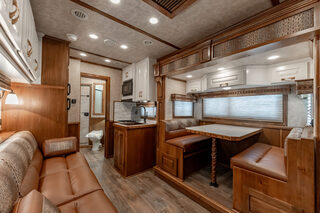 View Inventory: https://leonardtrailers.com/inventory/44911 Stock# 4491 New 2026 Cimarron NS5G-156 Side Load Gooseneck  LQ Horse Trailer Cimarron aluminum horse trailers are engineered to be durable and safe. Bumper pull or gooseneck configurations ensure effortless towing and comfort. Model: NS5G-156 Warranty: 8yr- Structural 3yr-Body and Hardware Trailer Specifications Dimensions Box Length: 38’ - 9” Box Width: 8’ - 0” Box Height: 7’ - 10” Undercarriage Axles: 8,000 lb  GVWR: 24,0000 lbs Brakes: Electric/Hydraulic, Disc Brakes Tires: Cooper 245/70 R17.5” LR-J Wheels: 8-hole aluminum spoke, 17.5” Design Nose Profile: Tapered sides, 18” radius corners Nose Sheet: Polished stainless steel Side Walls: Extrended Side Slat to GN Sheet Color: White Roof Material: Insulated roof panel Fenders: Teardrop Overall Width: 102” OAW Side Opening Ramp: 57” tall x 65” Wide  Dividers Type: Break Over Bar x1 Type: Full Bar Type x2 Head Grills Bar type Miscellaneous D-Rings: 3 Padding: 1 head, 8 side Lining: Kick mat – 48” high w/ .090 PL & insulation on LH & front wall; 54” high on RH walls Floor Mat: Removable VET type Hardware & Accessories Dome Lights: Optibrite LED (7) Bridle Hooks: Set of 4 Brush Trays: 2 Pop-up Vents: 2 Hold Up Steps: 3 Special Requirements Added recessed paddle latch on side access door on #1 stall Side Acess door 39” on RH side of #5 stall for side load #5 Stall is 48” wide for side load  Internal 2-point spring latches w/butterfly latch exterior, ILO 2 cam Locke rear tack doors Carpet all walls & doors of full rear tack  We offer outstanding financing options, accept trades, and can arrange nationwide NO HASSLE delivery! Inquire today for more information! (888) 333-6613 **We believe these specifications to be accurate. Any discrepancies are unintentional. Please verify information with a sales associate prior to purchase.** Stock Number:44911