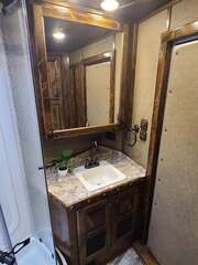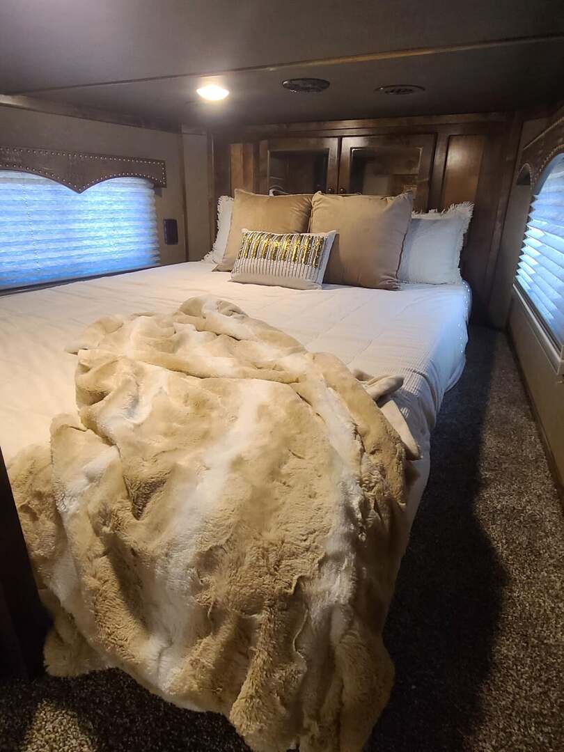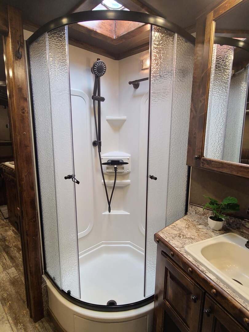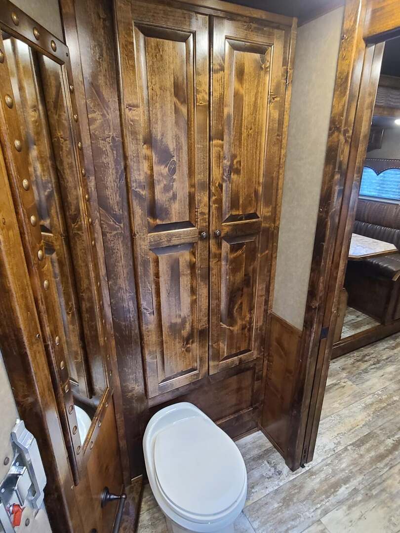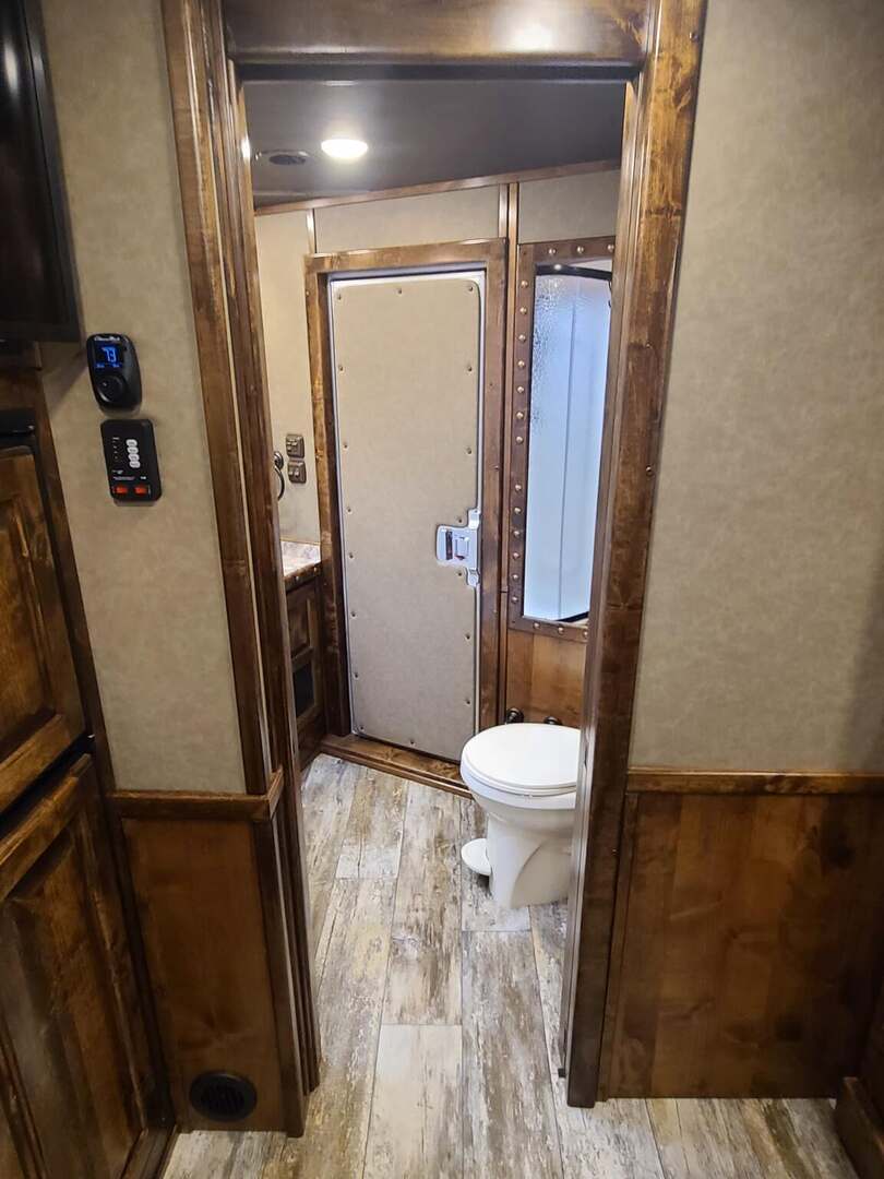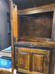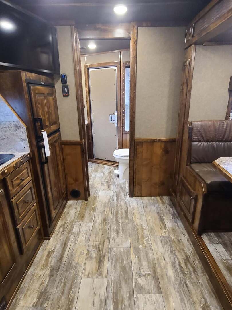 Platinum Coach 3 horse with 14’ Short wall Proline XP by Outlaw Conversions interior SLIDE OUT with 72” Sofa Sleeper and Dinette with SIDE LOAD Platinum Coach features: 8 wide x 30’ long x 7’6” tall 70/30 Rear Doors & SIDE LOAD 2 mangers with escape door at head Drop down window bars on head side Drop down windows on curb side 6’ hay pod & ladder 24” walk through door Baby panel on first divider Flow through and swing back dividers 2” Blocked axles for additional ground clearance 3 outside LED load lights 3 tier saddle rack, surrounded by 30 hooks!! 4 tier swing out blanket bar Flow through style steps 8,000# axles with 14 ply Goodyear tires on Aluminum Wheels Proline XP by Outlaw Conversion Features: 14’ short wall 72” Dinette in 6’ slide out Sofa sleeper at drop wall Enclosed bed for more privacy Dual-Hydraulic Jacks Dark Knotty Alder cabinetry Wardrobe in nose Onan 4.0 MicroQuiet generator on Platform 15,000 BTU A/C with heat strip 20,000 BTU furnace Electric power awning...NICE!!! 6 gallon hot water heater with Propane heat 60 gallon water tank AM/FM/CD/DVD player with 2 interior and 2 exterior speakers 24” LED Smart TV over fridge on door with locking arm 24” LED Smart TV in bed area Almond kitchen sink &  bronze faucet 2 Hardwood hat racks over R/V door 6.0 refrigerator Glass cover 2 Burner cooktop Microwave oven with vent hood Extra wide pocket door to bathroom 32” radius shower w/ bronze glass door & vent overhead Porcelain toilet with foot flush Mirror next to walk through door