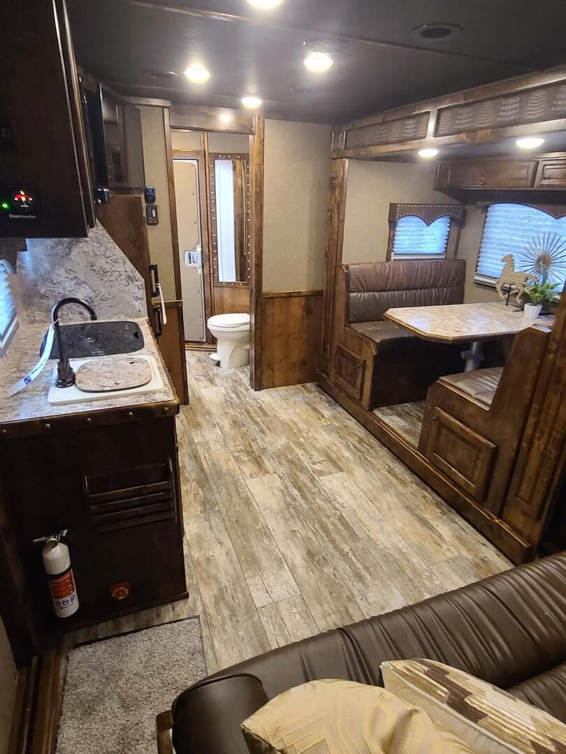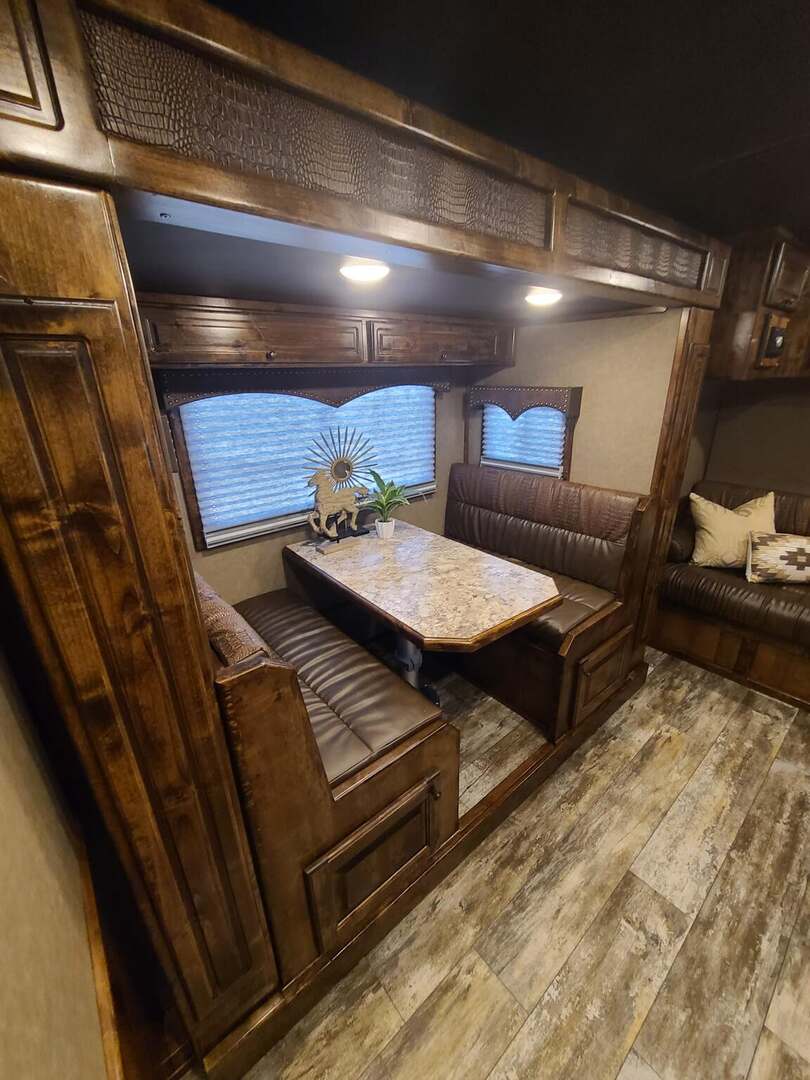 2026 Platinum Coach Outlaw 3 Horse 14' SW Outlaw Couch & Dinette Side-