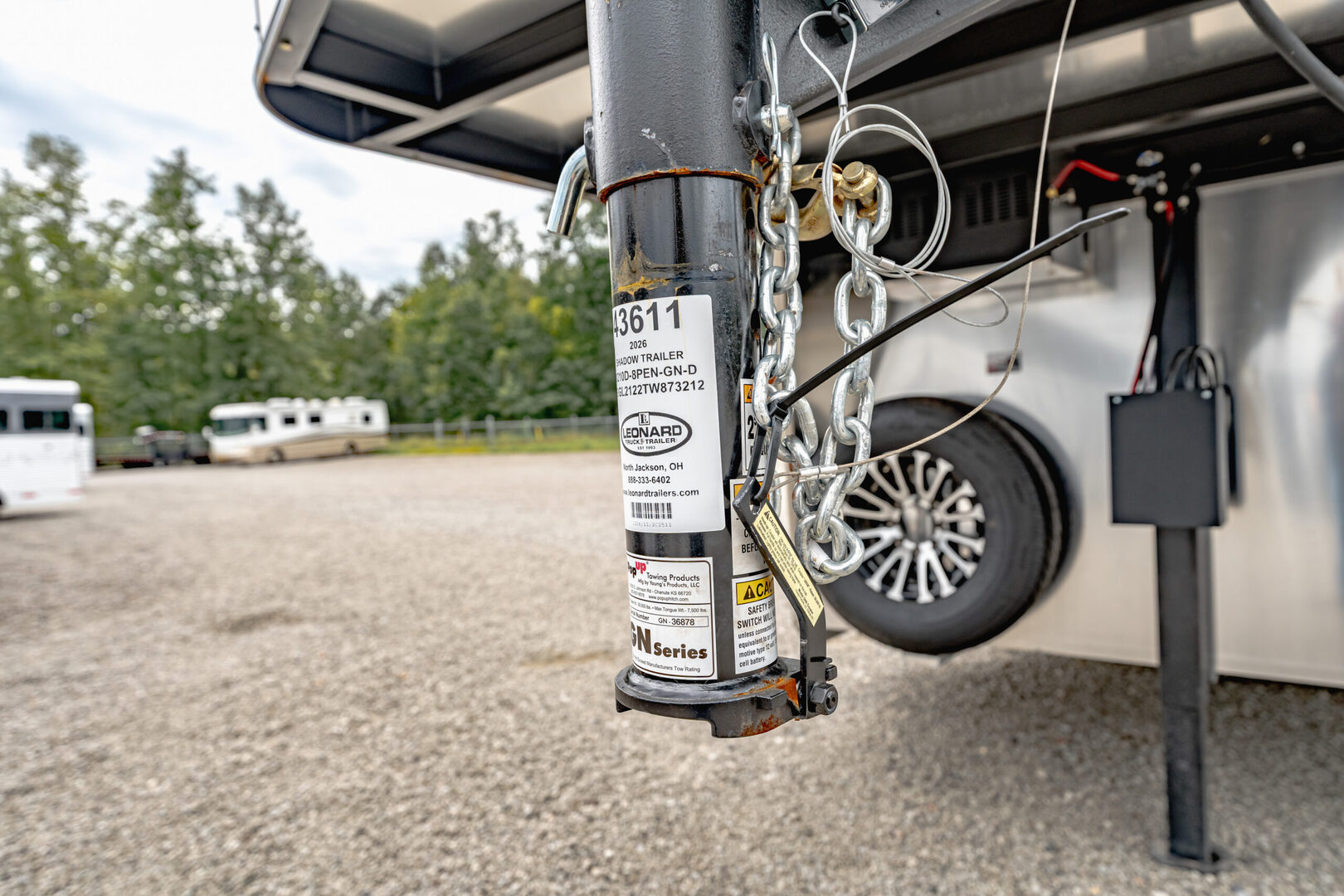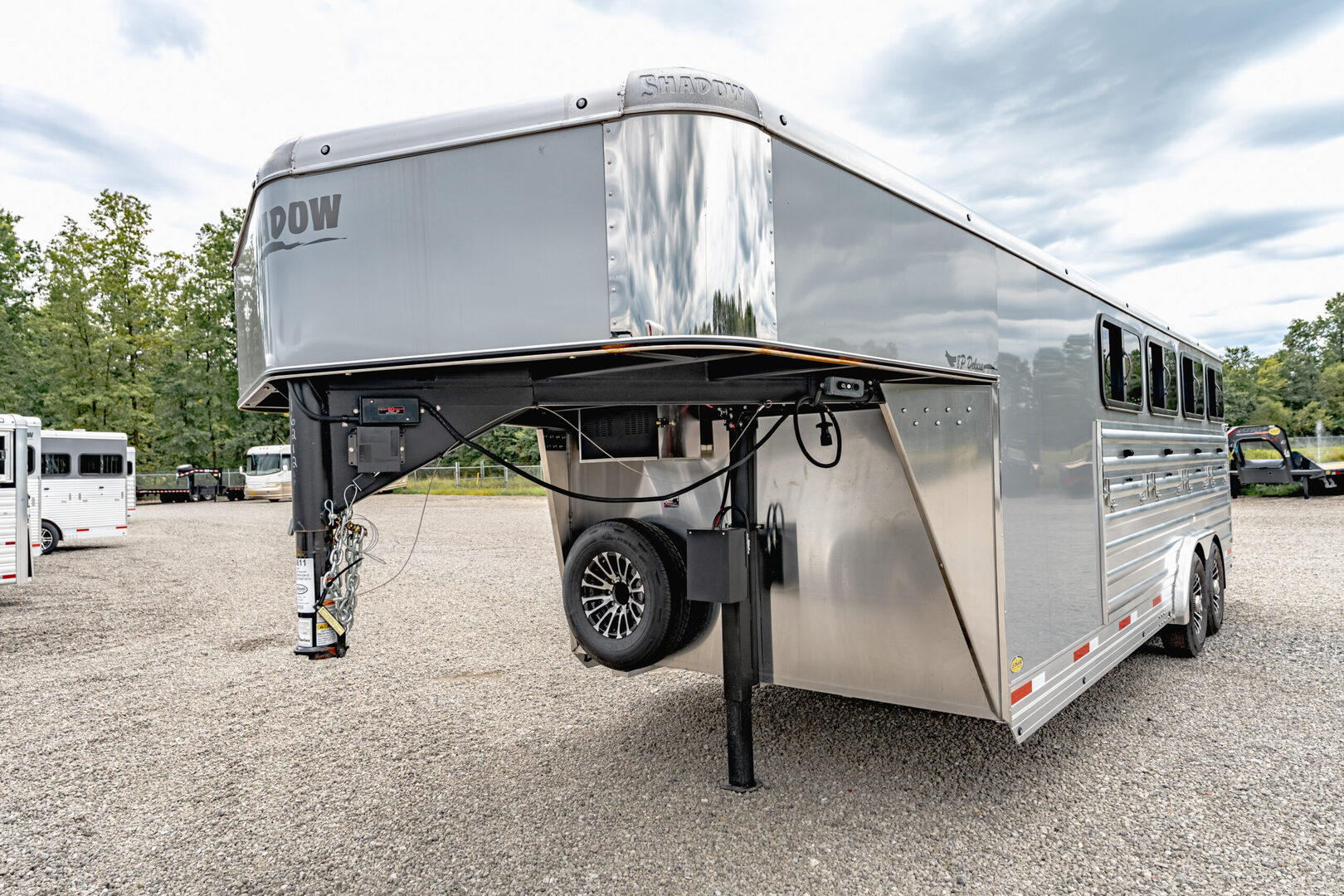 View Inventory: https://leonardtrailers.com/inventory/43611 Stock# 43611 New 2026 Shadow 80210D-8PEN-GN-D Gooseneck  Livestock Trailer  Shadow Stock Trailers are built tough for everyday use on the ranch. Shadow offers 8’ wide.  The spring axles give your stock a much better ride, getting your livestock and horses to their destination with less stress and fatigue. Model:80210D-8PEN-GN-D Warranty: 6yr-Structural 2yr- Bumper to Bumper  Pen Livestock 21’ Floor 28’ 6” OAL 8’ Wide 6’ 6” Tall Extruded Sides Aluminum Floor w/ Werm Flooring Single Hydraulic Jack Drive Train 7000# Torsion Axles 15” Tires (Includes spare) Dress 60” Straight Wall 32” Entry Door with Window Walk Thru Door to Stock Area Feeder Bars on Straight Wall Stock Area 42” Side Ramp 40/60 or 50/50 Aluminum Pens Lined and Insulated Wall and Roof 50/50 Rear Doors with Ramp Roof Vents LED Interior Lights with Switch Load Light with Switch No AC No Awning   We offer outstanding financing options, accept trades, and can arrange nationwide NO HASSLE delivery! Inquire today for more information! (888) 333-6613 **We believe these specifications to be accurate. Any discrepancies are unintentional. Please verify information with a sales associate prior to purchase.** Stock Number:43611