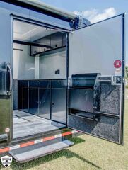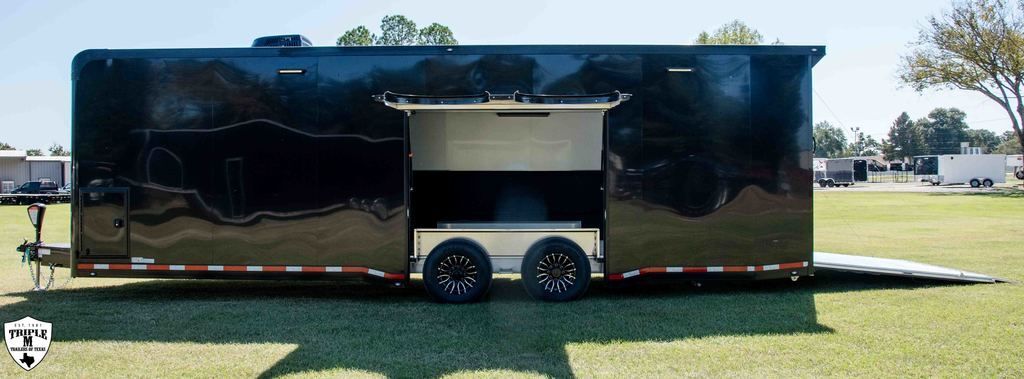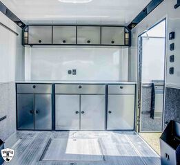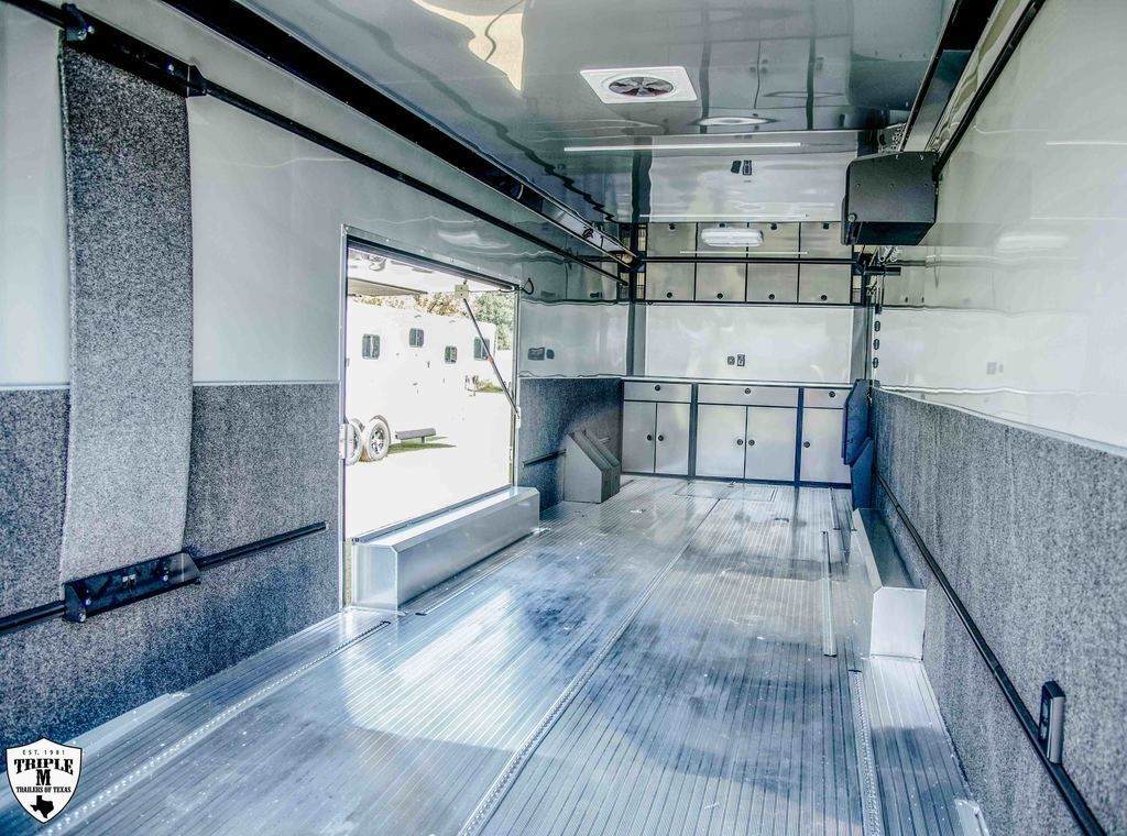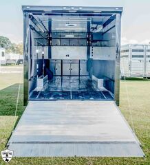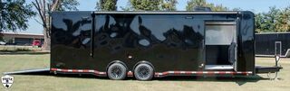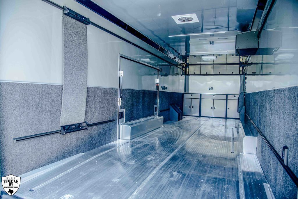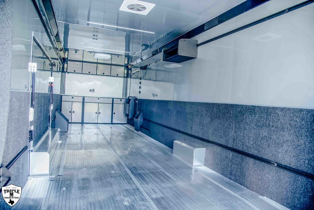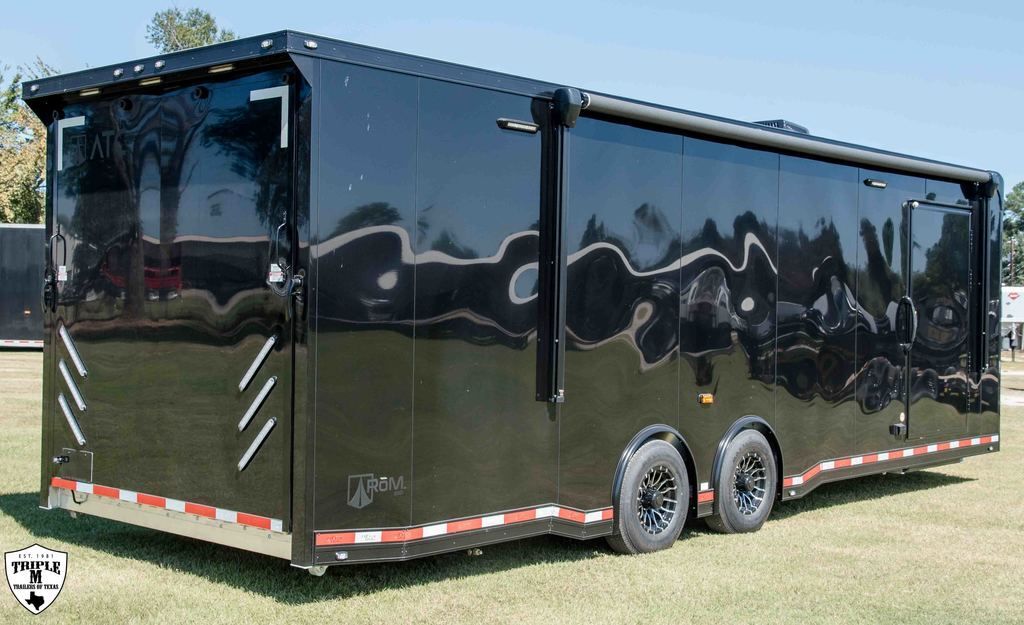 ROM 550 - 28’ HEAVY DUTY 27’10 FLOOR / 33’7” OVERALL 7’6 TALL / 9’9” OVERALL 8’ 6” WIDE / 102.5” OVERALL Aluminum Tube Construction 6 Sided Welded Frame 10 Year Structural Warranty Extended Triple Tube Tongue / 56” 16” O/C Floor Crossmembers ATC Cross Grid Wall Technology (550) 16” O/C Roof Crossmembers 2” x 8” Sub frame Tubing Awning Prep Rear Spoiler with (3) LED & Backup Lights Polished Cast Corners with Stainless Steel Trim Spread Axles with Full Perimeter Skirt Beaver tail Floor Winch Plate Mechanical: Torsion Axles ST 235 Aluminum Wheels Entrance Door 48” Safety Chains & A Frame Coupler 5,000 lb Manual Jack 4,000 lb Ramp Door Ramp Transition Flap Stainless Steel Rear Paddle Locks (3) 16” Slimline Tail Lights Diagonal (1) 16” Slimline Reverse Lights (4) Recessed D Rings (2) Manual Roof Vents One Piece Aluminum Roof .040 Screwless Aluminum Exterior 24” Stone Guard 3/8” Engineered Walls with Cove 3/4” Engineered Floor Open Stud Ceiling (2) Dome Lights with Wall Switch 7” Lower and 4” Upper Trim Stainless Steel Rear Header and Verticals R?m 550 Series Features LifeTrac Modular Track System (Patent Pending) (2) Window Prep Locations (RS/CS) (2) 12V USB Cove Ports Premier Package Aluminum Ceiling (.030 White) and Spare Cover (Black) Aluminum Walls Premium Escape Door 50 Amp Electrical Package Insulated R3 Walls/R6 Ceiling 40” Tall Carpet on Walls (2) Bogey Wheels Tongue Storage Compartment Cabinet Package 7 Upper & 30” Lower w/ Storage Box/Door/Slide OTHER OPTIONAL FEATURES: (3) AIRLINE TRACKS / RECESSED EXTRUDED ALUMINUM FLOORING (2) 12v SCENE LIGHTS / ROADSIDE 15BTU A/C w/ HEAT PUMP & THERMOSTAT 32” x 32” x 10” IN FLOOR STORAGE 12v AWNING w/ LED LIGHTS ELECTRIC TONGUE JACK (2) SCISSOR JACKS (2) MIDSHIP TURN SIGNALS EXTERIOR GRAB HANDLE SPARE w/ ALUMINUM RIM UPGRADE RACE PACKAGE: (4) Single Coat Hooks (8) Wall Ties Premium Strap Holder Floor Jack Holder Dual Helmet Holder (2) Fuel Jug Holders Door/Wall Caddy Cord Hanger 90” x 84” REAR DOOR OPENING 2 & 5/16 COUPLER w/ 21K COUPLER RATING 6,000LB AXLES EMPTY = 5,203 PAYLOAD = 7,997 GVWR = 13,200