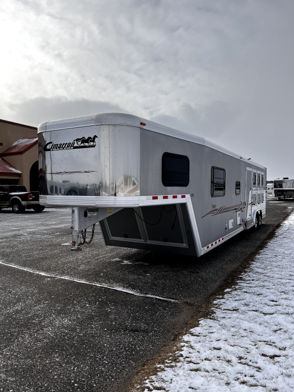 2008 Cimarron 3H 17’ Trail Boss LQ * Stud Gate At First Stall * Padded Divider * Mangers * Ramp * Rear Tack * Bridle Hooks * Swing Out Pad Bar * Side Tack * 3 Saddle Racks * 4 Rows of Bridle Hooks * Sofa * Sofa Chair * Lounge Chair * Multiple Cabinets Throughout * Fridge & Freezer * TV * Microwave * Cooktop * Walk in Closet * Hanging Rack * Large Closet Space *The information in this ad is believed to be accurate, any error is unintentional. Please verify information when purchasing.* VIN: 5468