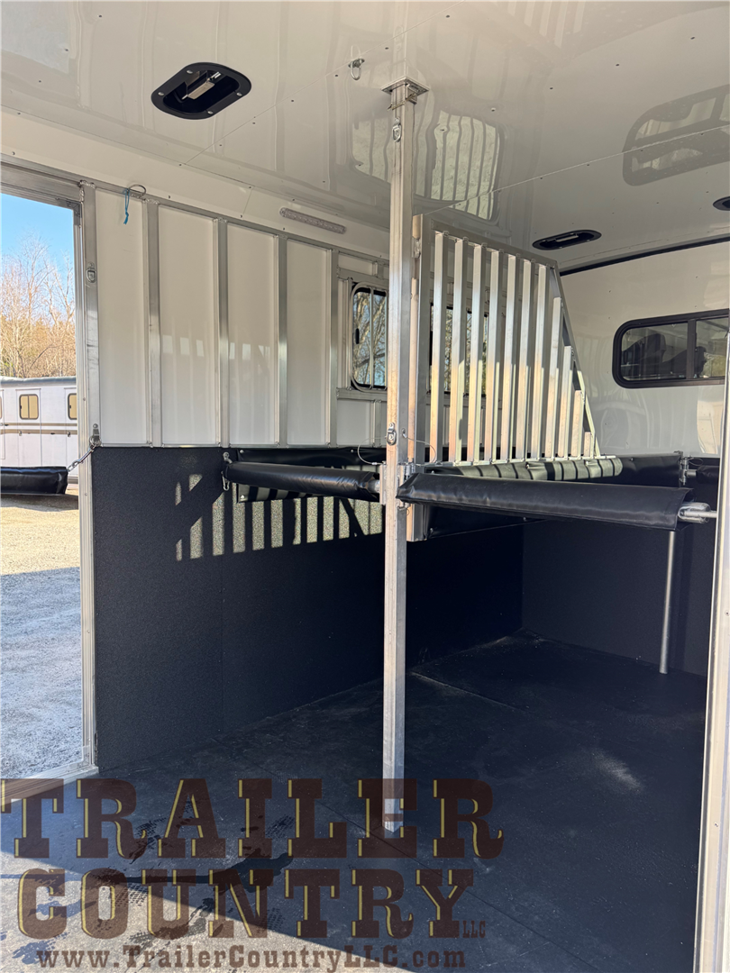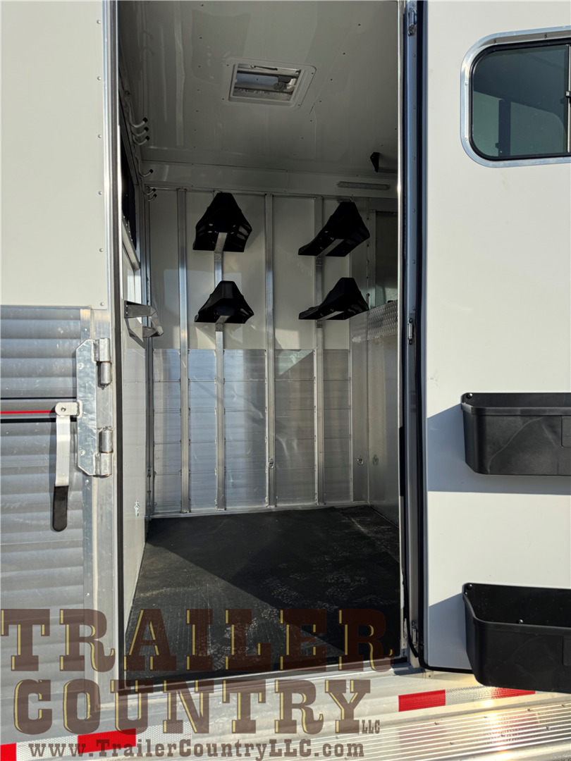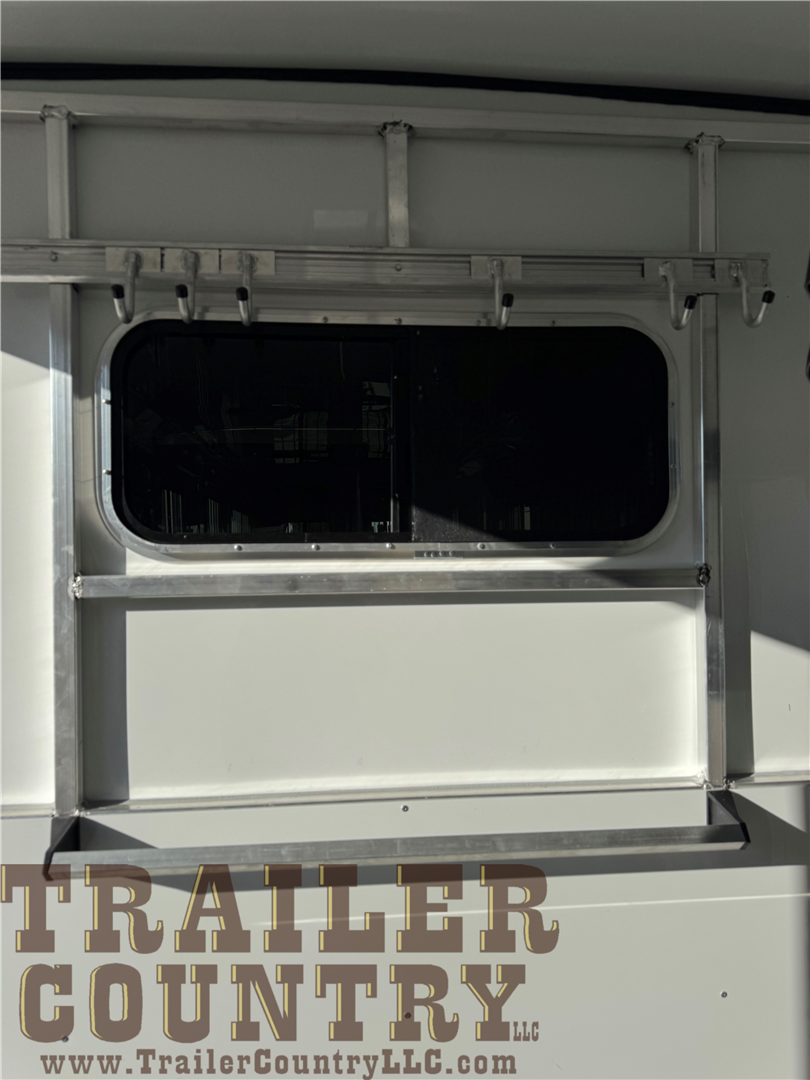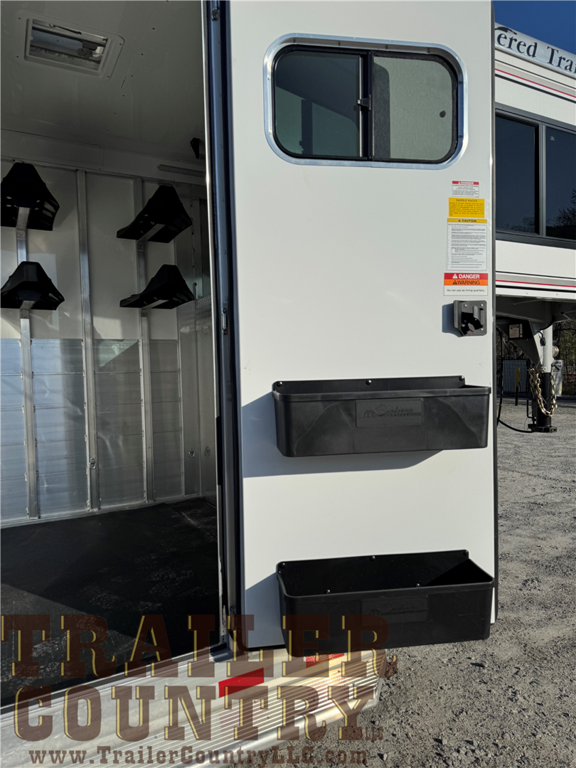 - 5′ dressing room includes 4 saddle racks, mats on floor, carpet in nose, 6 bridle hooks, blanket bar, clothing bar, 2 brush boxes on door