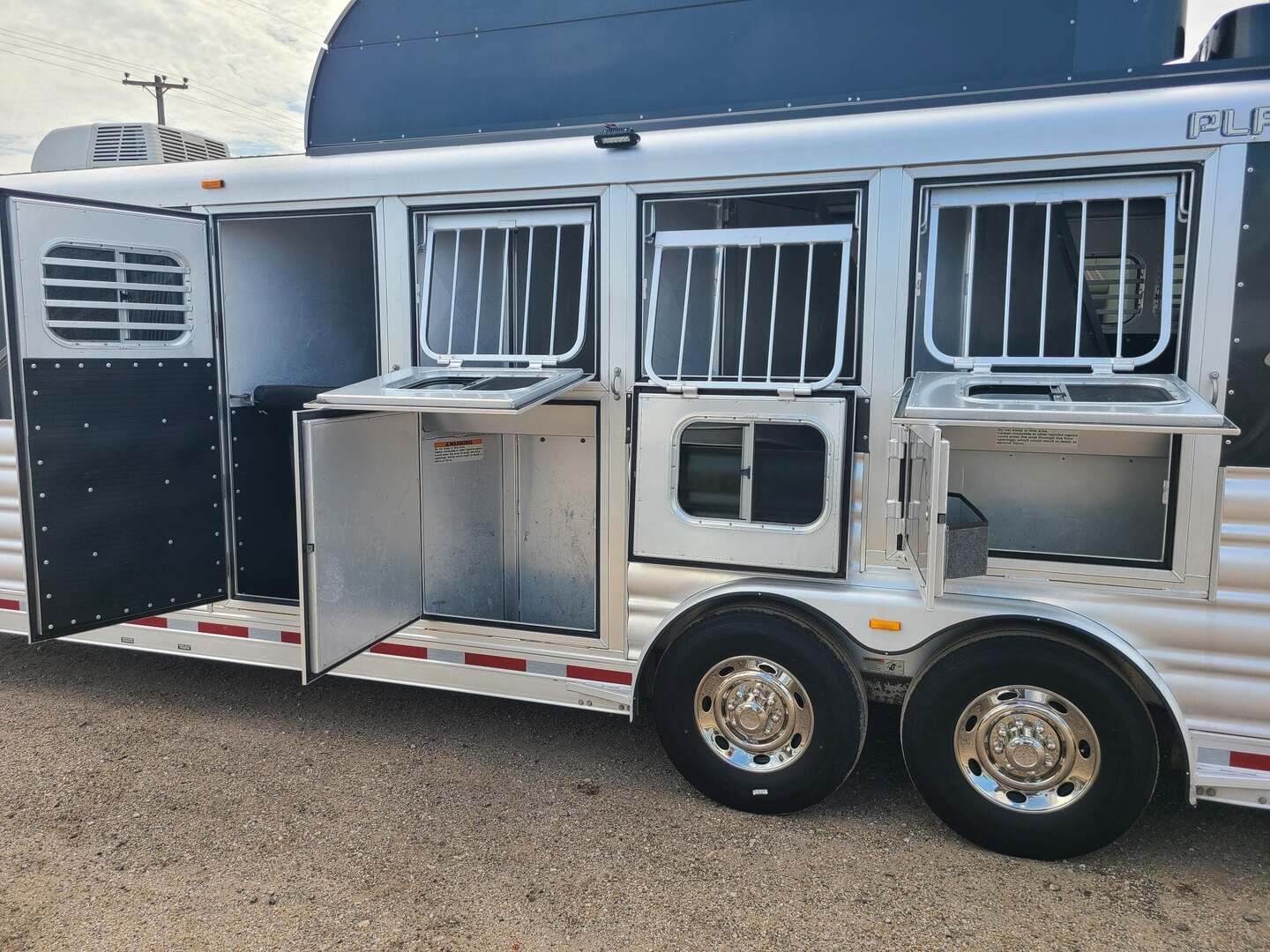 2017 Platinum Coach 4 Horse 9’ LQ 8 x 26’ long x 7 tall 7000# axles with 14 ply tires 9’ Duba Conversion living quarter 72” dinette sleeper 13,500 BTU A/C with Heat Strip 3.0 12v refrigerator 6 gallon water heater 40 gallon water tank Microwave over fridge 32’ radius shower Vanity sink with custom backsplash Walk-in closet Single leg hydraulic jack Double 20# propane bottles 6’ hay pod 3 mangers, escape door on first stall Fully checked out and ready to go
