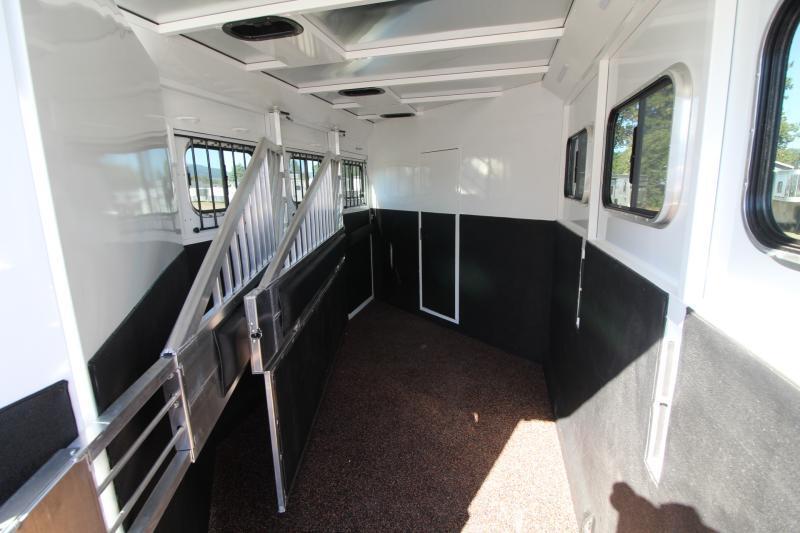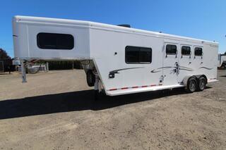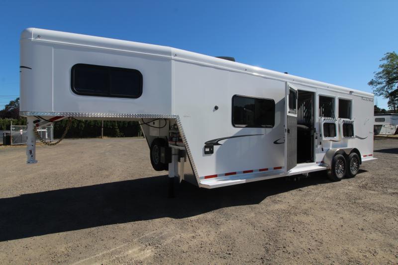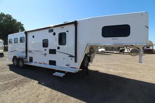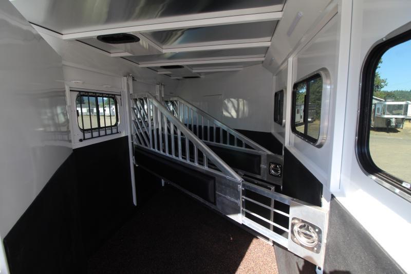 ***PICTURES ARE NOT OF ACTUAL TRAILER, FOR ACTUAL TRAILER FEATURES PLEASE REVIEW DESCRIPTION, COLOR OF INTERIOR COULD BE DIFFERENT OF ACTUAL TRAILER THAN PICTURES SHOW.*** Gooseneck, Slant Load, with Fold-Up Rear Tack Compartment and Fully Enclosed Horse Area. 8 ft Short Wall by 13 ft Long Wall of Living Quarter Space Upgrades: * Power Awning * Exterior faucet * Glass Shower Door * Exterior Outlet * Pass Through Door * Escape Door * Stud Divider * Rollout Door Screen * Shower dome * 2 Exterior Speakers * Convenience Package which includes; Spare tire, Water Tank, Door Mounted Organizer, Sport Bag, and Flood Lights on Each Side and rear. CONSTRUCTION & EXTERIOR: * 24 x 48 Escape Window * 18 x 18 Window * Camper Door with 24” window * 7’0” Wide * 7’6” Tall * 8’0 Gooseneck * Retractable Step Under Camper Door * Power Awning * Hoof Grip Flooring in Horse Compartment * APROXIMATE DRY WEIGHT IS AROUND 8900LBS INTERIOR: * Soft Touch Ceiling * Synthetic Leather Sofa or Cushions * Day/Night Shades w/ Valances * Color coordinated interior * Vinyl floor w/wood print throughout * Hardwood Cabinetry (NATURAL COLOR) FRESH & WASTE WATER SYSTEMS: * Low point fresh water drains * Demand type water pump * Combination locking water center * 30 gal. fresh water tank * 28 gal. black holding tank * 28 gal. gray holding tank * 6 gal. DSI water heater * Sewer hose storage compartment * Sewer hose and adapter GALLEY: * 2 burner cooktop with range hood * 3 cu ft. Double door refrigerator * Sink * Wood trimmed countertops * Flip up countertop extension * Microwave/Convection Oven HEATING/INSULATION * Dual 5 gal. propane tanks w/ auto changeover * Fully insulated floor, roof and walls * 18,000 BTU furnace (ducted to bathroom) * Air Conditioning SAFETY: * Locking water fill door * Fire extinguisher * CO/Smoke detector * L.P. detector * Alternate emergency exit BATHROOM: * 36 x 40 Shower stall with glass door * 12 volt exhaust fan * Fresh water flush toilet * Wardrobe Closet * (2) Drawers SLEEPING ACCOMMODATIONS: * Bedspread, pillows & shams * Dinette converts into a bed * Sliding dinette table top ELECTRICAL: * Locking battery box * Monitor Panel * 12 volt outlets * 110 volt outlets * 110V/12V power converter w/charger * 30 service cord * AM/FM stereo with CD player * TV antenna with power booster * Porch light by camper door * Lighted grab handle by exterior door * Recessed LED lighting ** Descriptions Subject to Error** For more information on this trailer please contact Double J Trailers at 360-225-1234. Thank You! Financing available to qualified buyers! All trailer prices are cash prices. Thank you! Trades Welcome Two Lots To Better Serve You! Woodland Washington & Albany Oregon We have over 250 trailers in stock. Please view our entire inventory at [www.double-j.com](http://www.double-j.com/) thank you! *Double J imposes a surcharge of 3% on credit card purchases of amounts greater than $500*