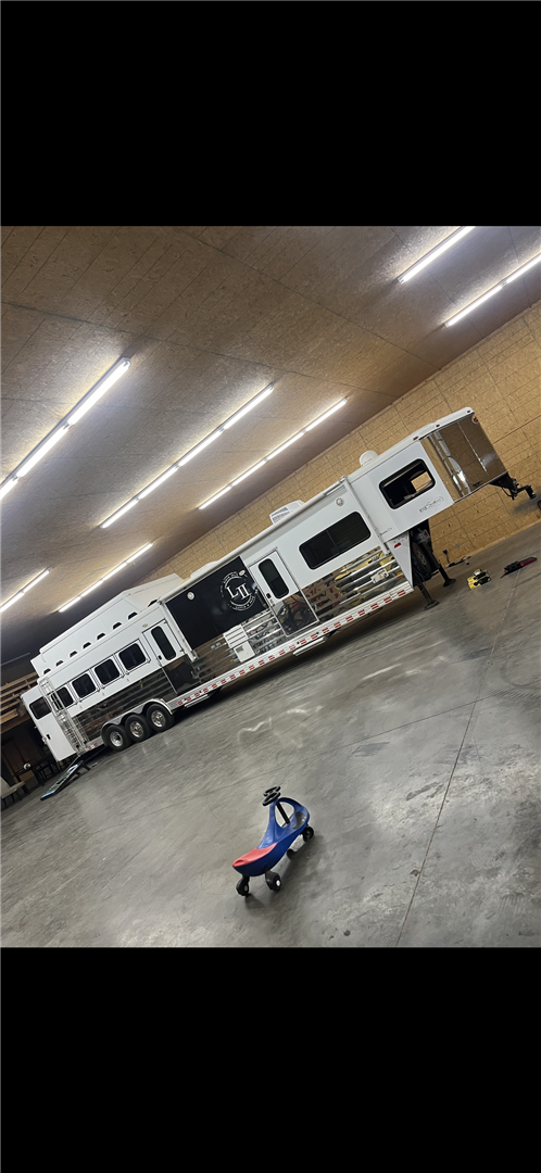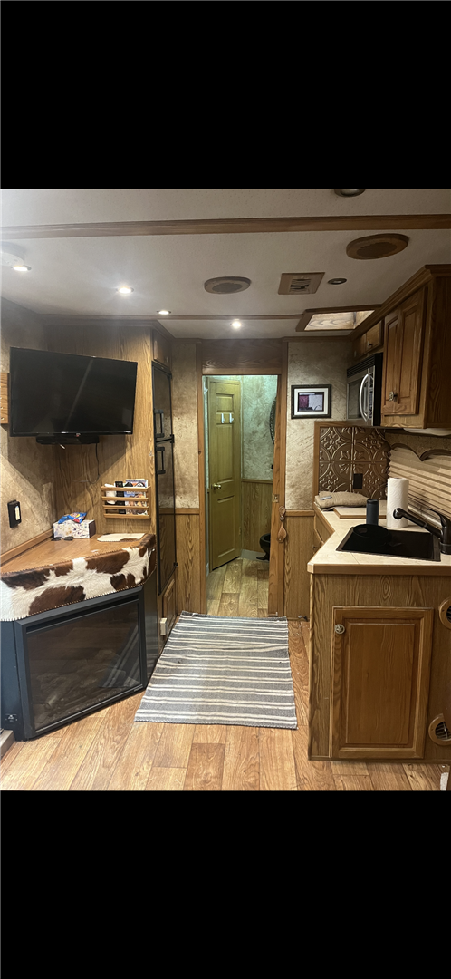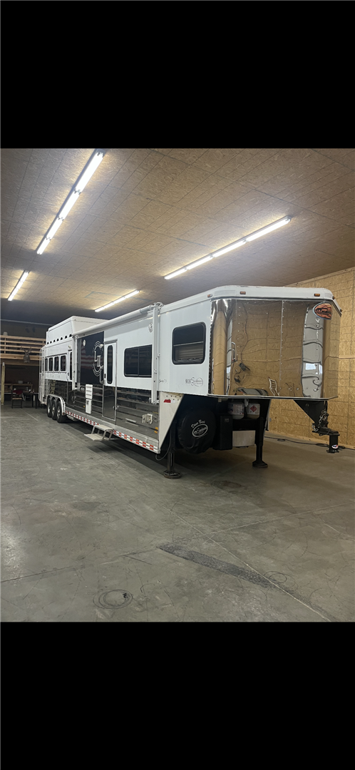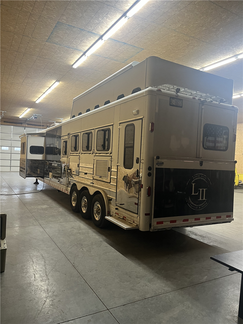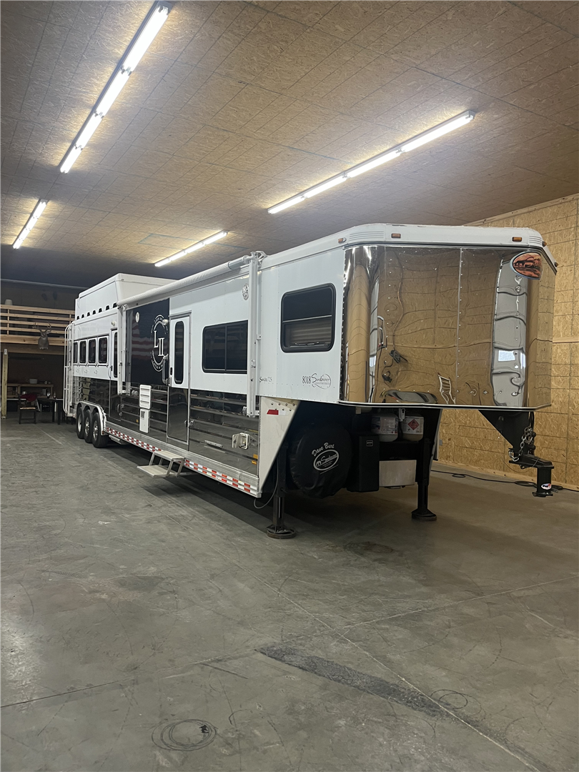 37' Sunlite 725 Gooseneck, 4 Horse,Ramp, Awning, Shortwall (Slide), Rear Tack, RubberFloor, Rooftop Hay Rack, New A/C,Fridge, TV, DVD Player, Microwave,Elec Fireplace, 2 owner
