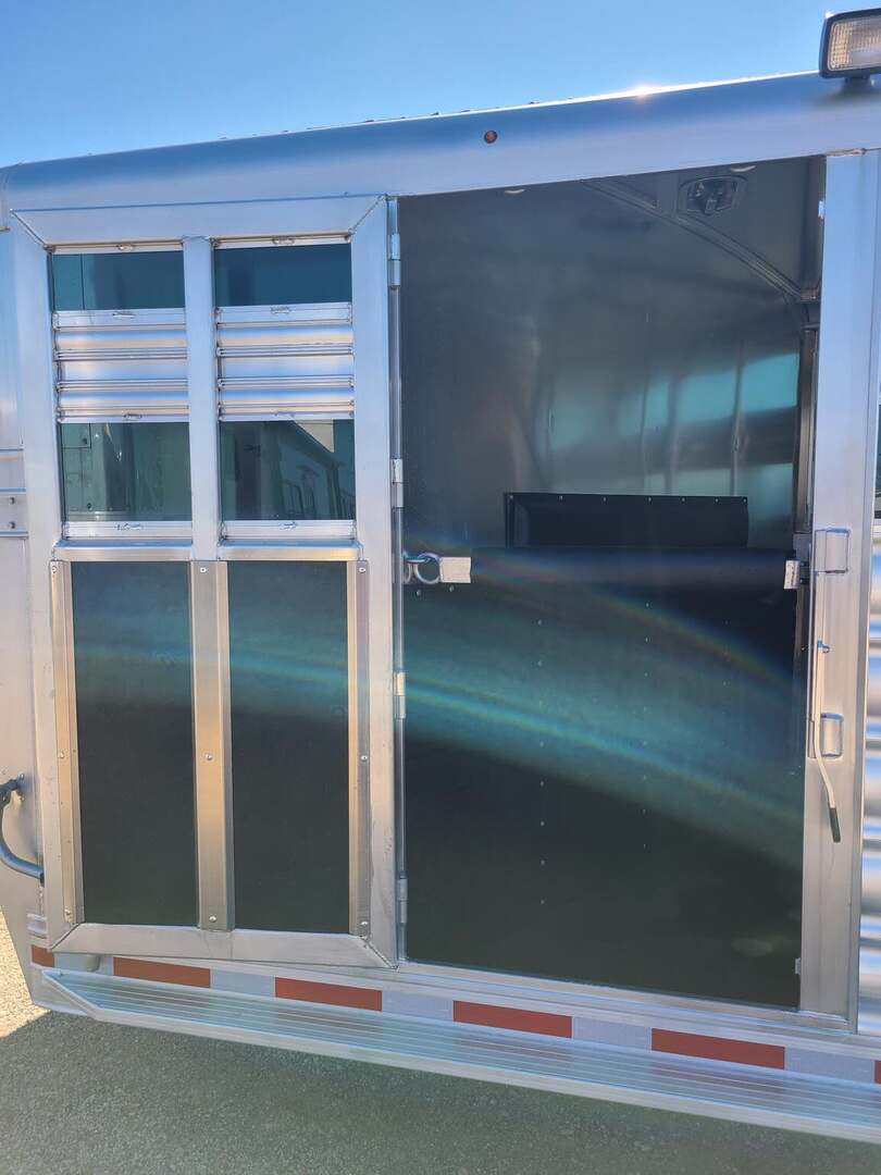 THIS TRAILER IS ON ORDER AND WILL ARRIVE IN FEBRUARY Platinum 25’ Stock Combo 7’6” x 25 x 7 tall Mill Finish exterior skin Aluminum mag wheels Extremely versatile trailer!! 1st gate is horse divider with removable panel at bottom 2nd gate is normal horse divider 3rd gate is slatted center partition, keep horses and cattle separate!! Haul roping steers & 3 horses Haul 6 horses, 8 cows, haul whatever!! Plexiglas & Track on both sides of trailer Rubber in between wall studs on both sides 6’ hay rack & ladder 6 saddle racks, 15 bridle hooks, and 4 blanket bars in tack room!! 3 tier swing out saddle rack keeps all of your tack easily to grab!! Carpeted bulkhead wall to protect your gear Rubber mats in 30” dressing room floor for easy cleaning One brush tray and five hooks on tack door Stainless steel nose with Mill Finish exterior skin Double rear gates with double anti rack hardware Stock escape door on driver side 4 LED load lights and plenty of outside tie rings Two roof vents for maximum ventilation!! Ready for anything!!!