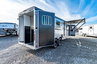 View Inventory: https://leonardtrailers.com/inventory/45113 Stock# 45113 New 2026 Bison SV7310 Gooseneck Horse Trailer With Living Quarters Unparalleled horse safety and comfort with the Ranger, your trusted steel frame luxury horse trailer! The Bison Ranger boasts premium features and options similar to an aluminum frame trailer while ensuring equine well-being on every journey by pairing luxury with strength! Model:SV7310 Warranty: 1yr- Exterior Paint (Peeling& Fading) 2yr- Components, Assembilies, Systems 6yr- Structrual As Long As You Own The Trailer-Pressure Treated Lumber Floor in Horse Area Trailer Options Silver Exterior 6000# Axles (STD) E-Tire  Hydraulic Jack, Single Leg 8000# Horse Area Ceiling Stud Wall RV Door Latch @ Escape Door  Load Light Package (4 Total) Conversion Options Graphite Brown Interior Artist Maple Cabinetry Sofa  Recessed Cook Top w/ Range Hood 13,500 BTU Air Conditioner, Non- Ducted 18,000 BTU Furnace Stereo with Interior & Exterior Speakers Awning, Powered with LED Light Strip 32” LCD TV w/Locking Swing Arm Bunk Privacy Curtain Porcelain Toilet We offer outstanding financing options, accept trades, and can arrange nationwide NO HASSLE delivery! Inquire today for more information! (888) 333-6613 **We believe these specifications to be accurate. Any discrepancies are unintentional. Please verify information with a sales associate prior to purchase.** Stock Number:45113