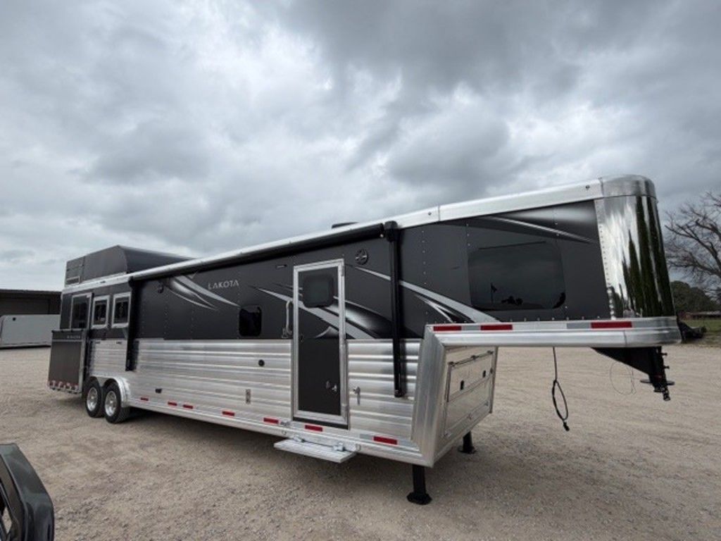 3H BIGHORN SIDE LOAD w/ 14’ CENTER ENTERTAINMENT LQ 32’ FLOOR / 40’ OVERALL8’ WIDE / 8’ 2” TALL14’ CENTER ENTERTAINMENT LQADDED A/C VENT IN BED AREADINETTE IN SLIDE9’ FLUSH SLIDEDOUBLE HAT RACKFIREPLACEREAR SIDE LOAD w/ 1’ ADDEDCORNER H2O TANK w/ OUTSIDE SPIGOT(2) SWINGING BLANKET BARS ON REAR DOORSTELESCOPING REAR DIVIDERBRIDLE BARS w/ HOOKS(2) BRUSH TRAYS FLIP DOWN REAR STEPSWING OUT SADDLE RACKDROPS ON BOTH SIDESSHELVING SYSTEM IN REAR TACKSMOKED HICKORYMEMPIN STRAW SOFT TOUCH CEILING & WALLSDURKIN CHALK SOFT TOUCH ACCENTARENITE CREAM COUNTERTOPSPEBBLE BACKSPLASHEUROPEAN OAK SANDBAR LINOLEUMELEGANCE SEAL FURNITUREMATTE BLACK METALLIC SKINEMPTY = 13,995GVWR = 16,000